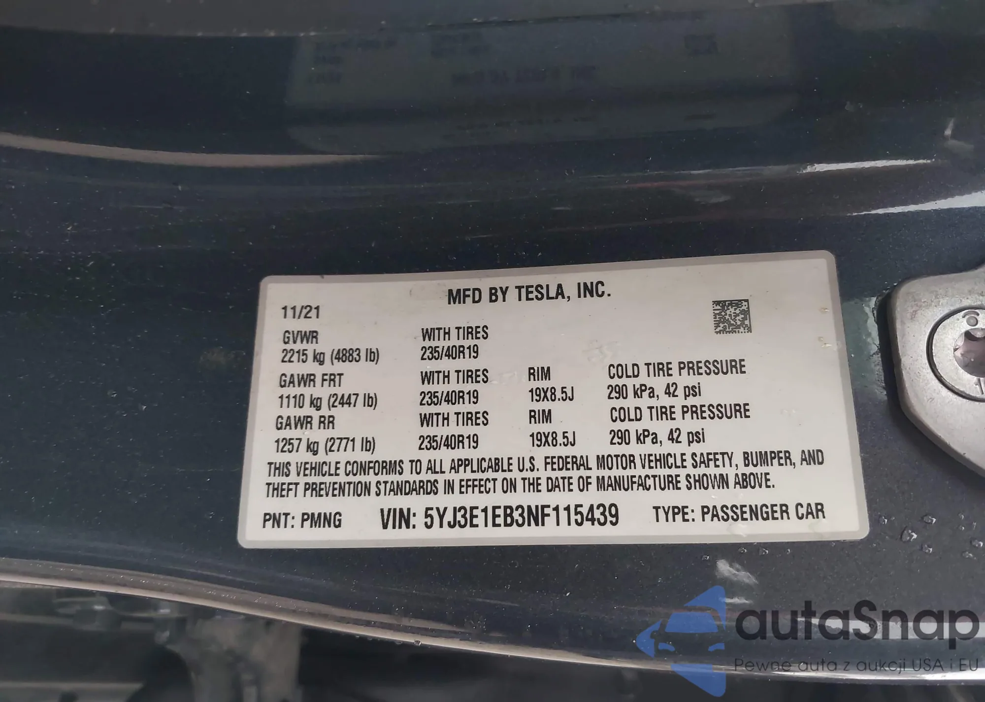 • VIN 5YJ3E1EB3NF115439