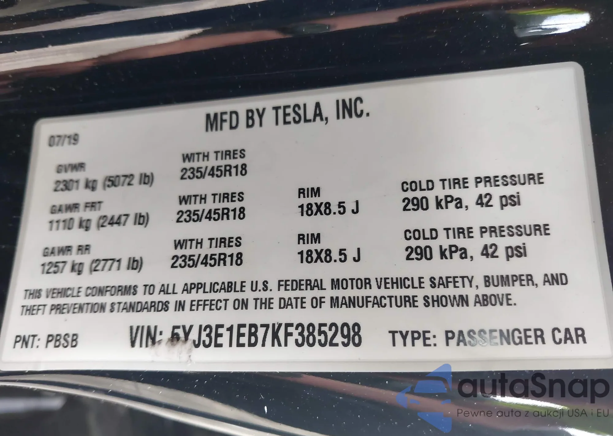 • VIN 5YJ3E1EA8JF035250