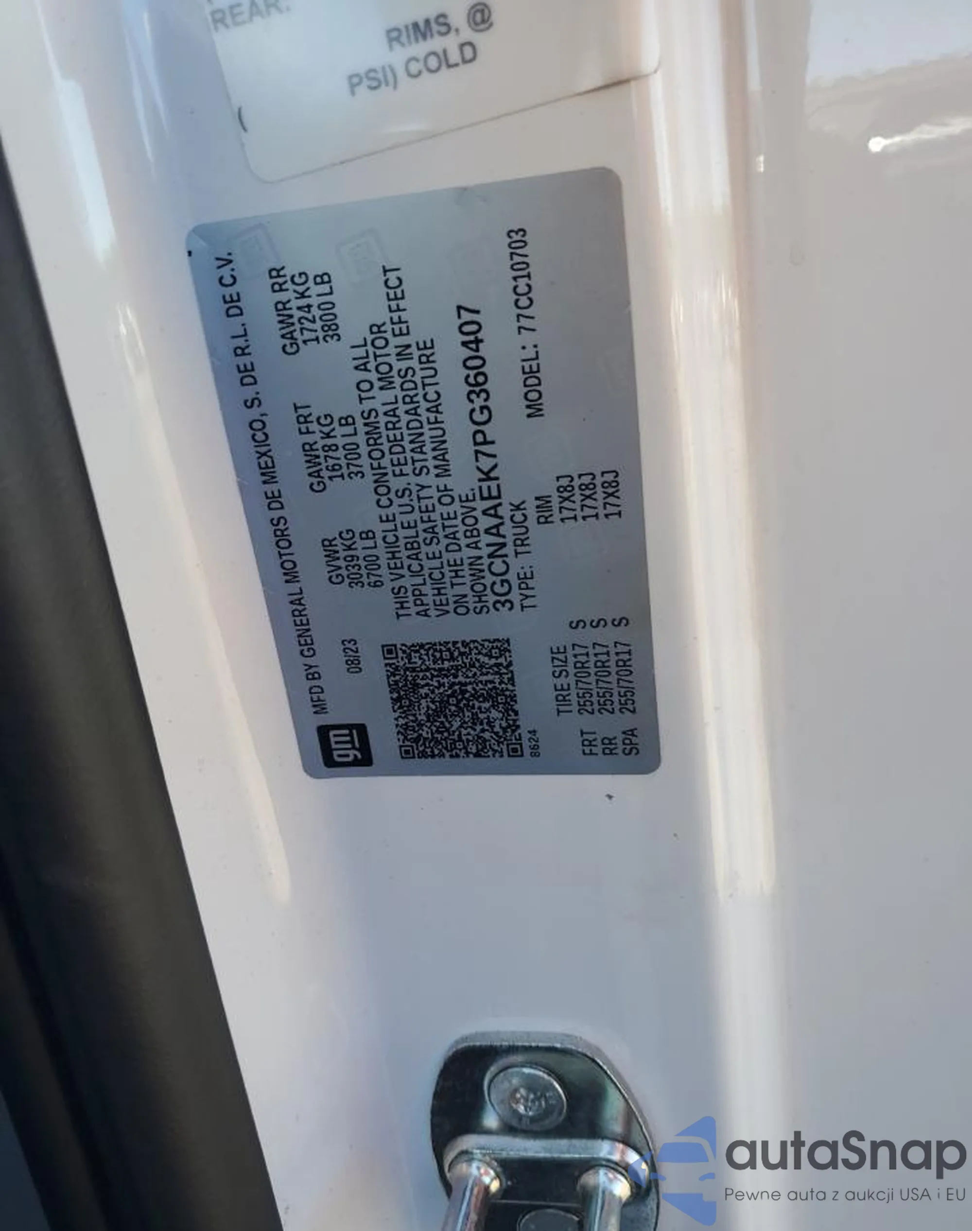 • VIN 3GCNAAEK7PG360407