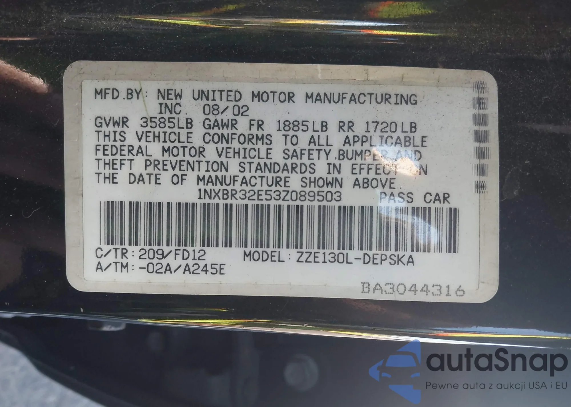 • VIN 1NXBR32E53Z089503