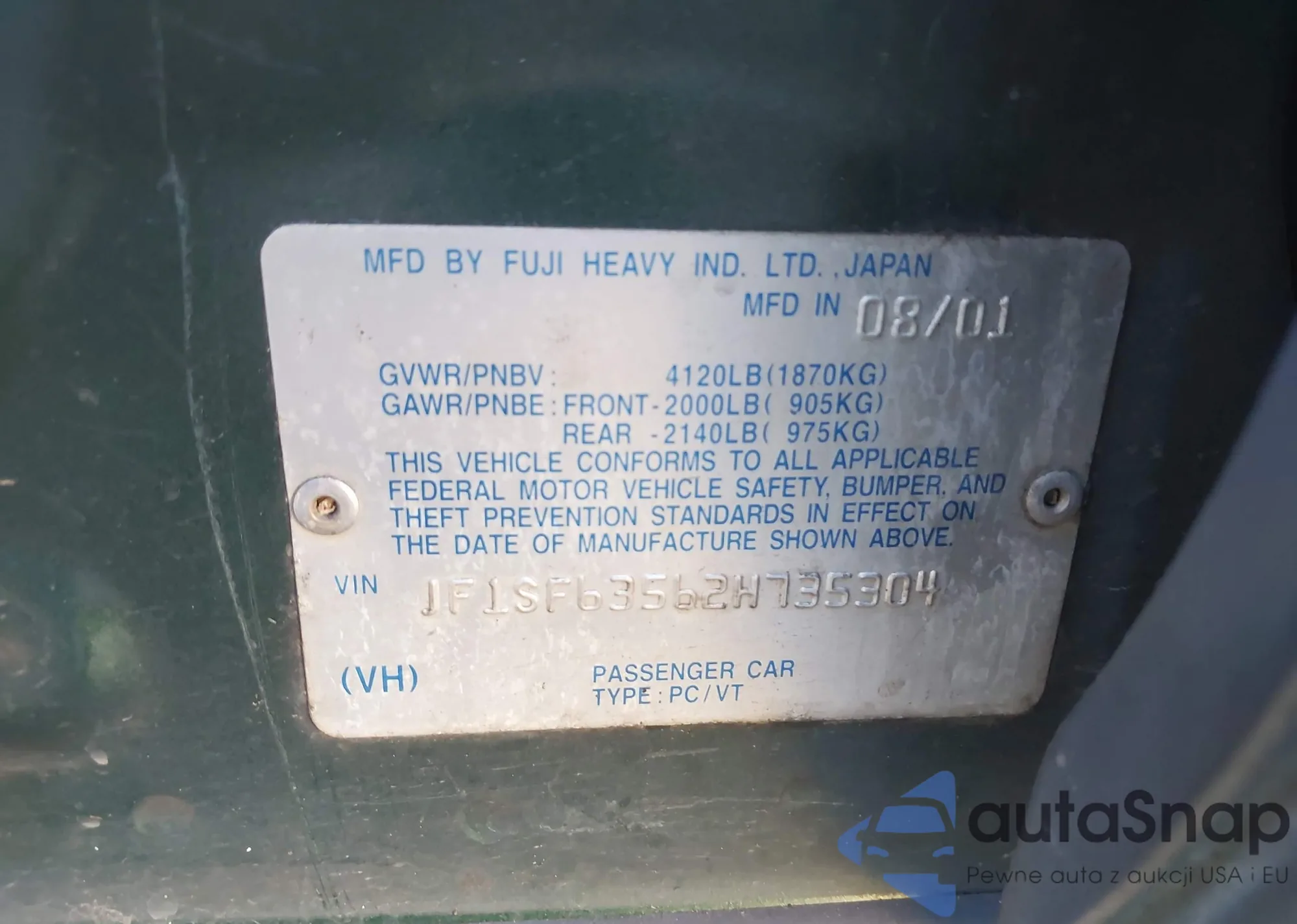 • VIN JF1SF63562H735304
