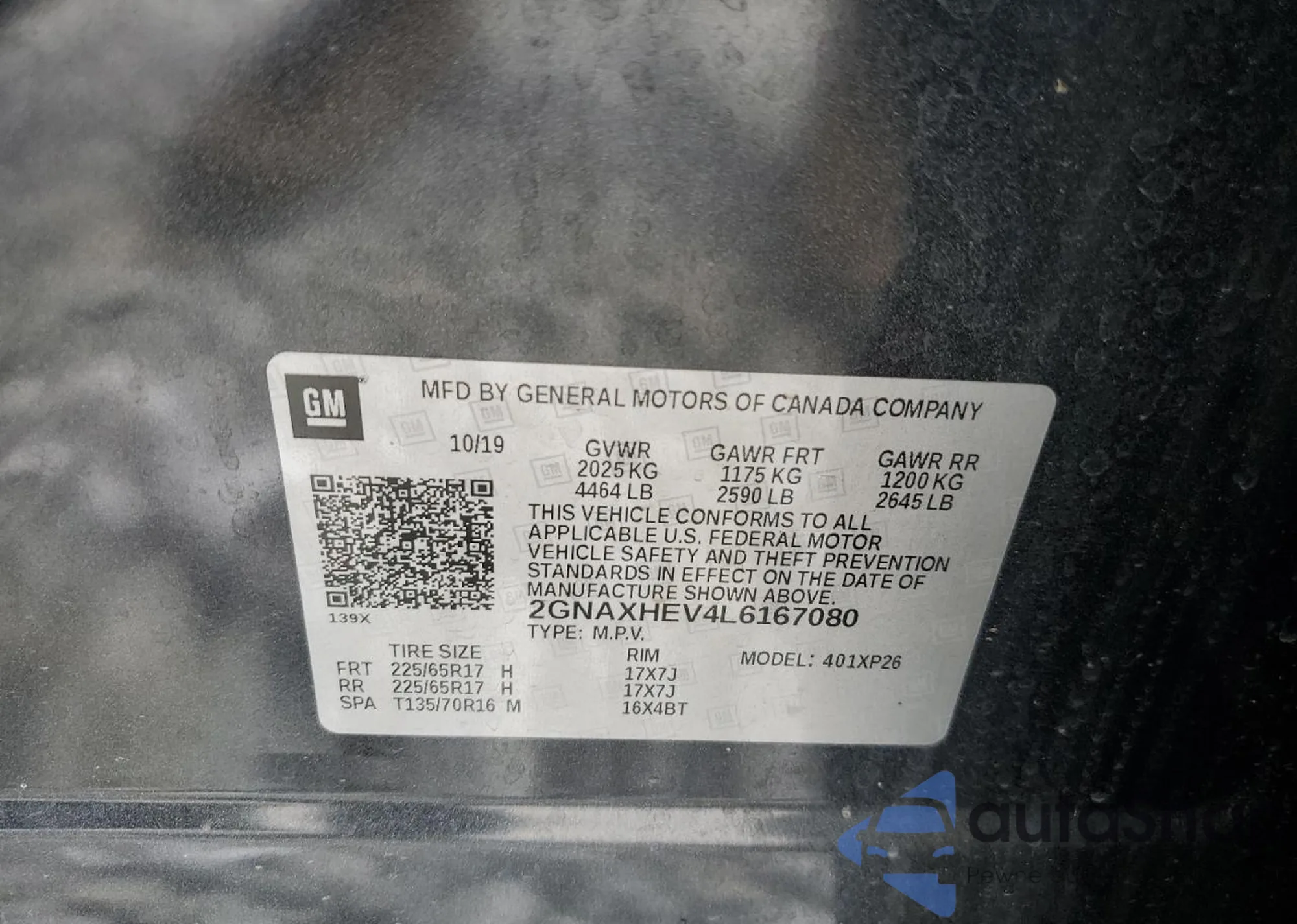 • VIN 2GNAXHEV4L6167080