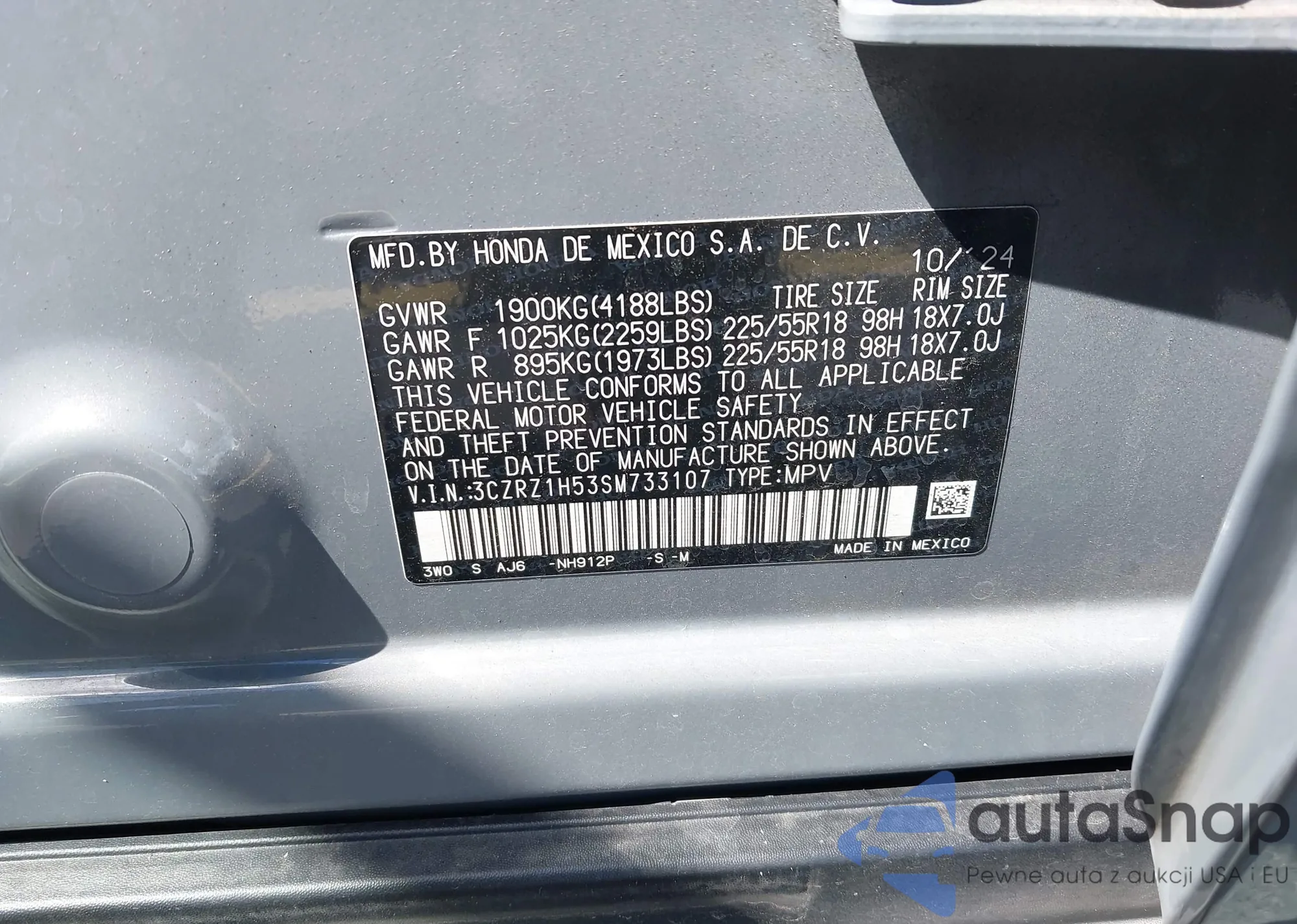 • VIN 3CZRZ1H53SM733107