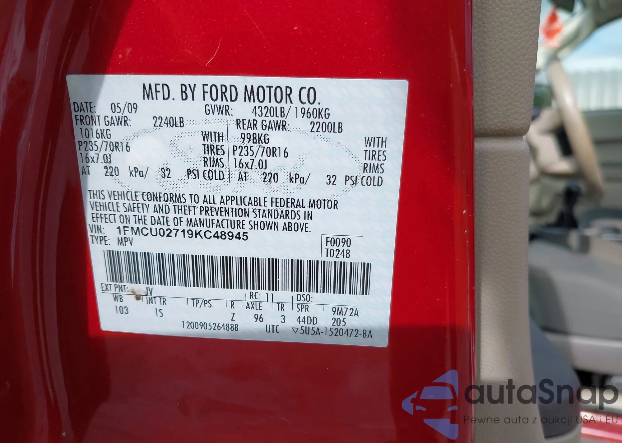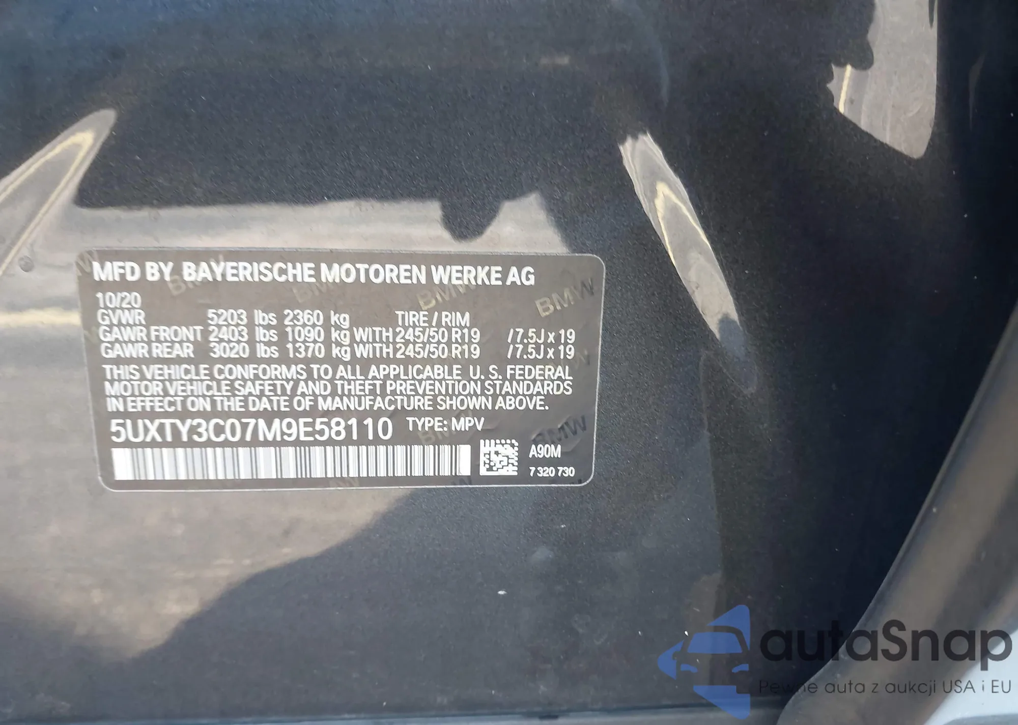 • VIN 5UXTY3C07M9E58110