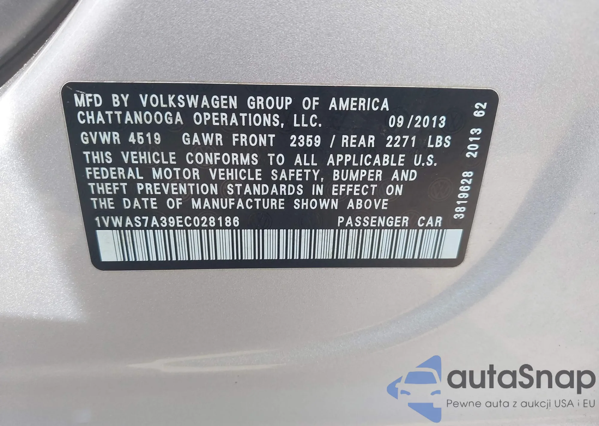 LOT: 43315523 VIN: 1VWAS7A39EC028186