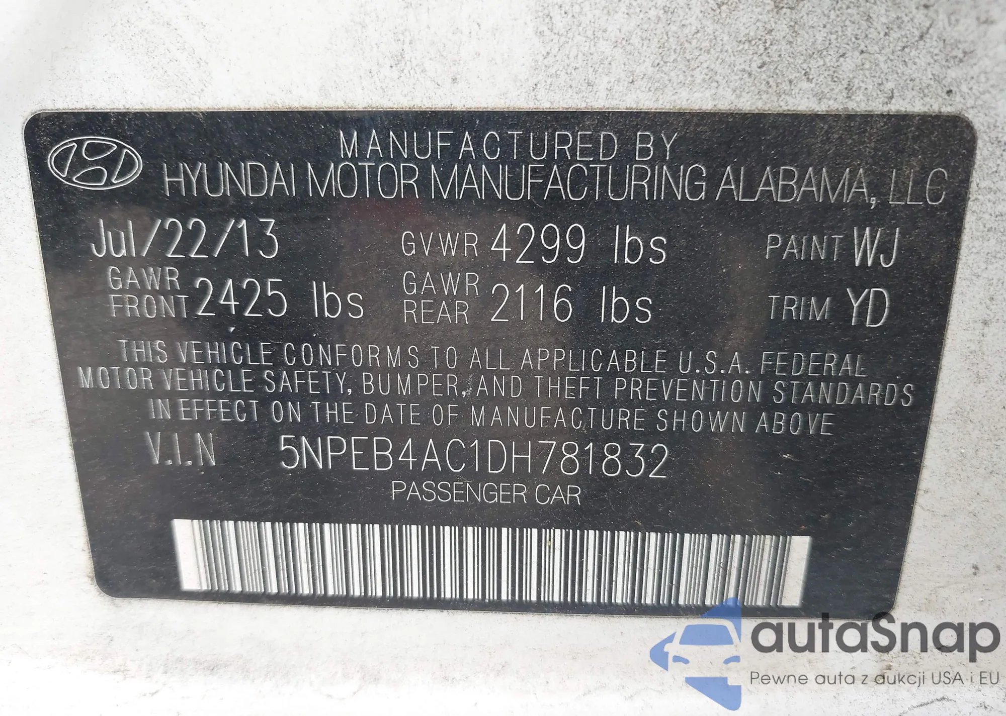 • VIN 5NPEB4AC1DH781832