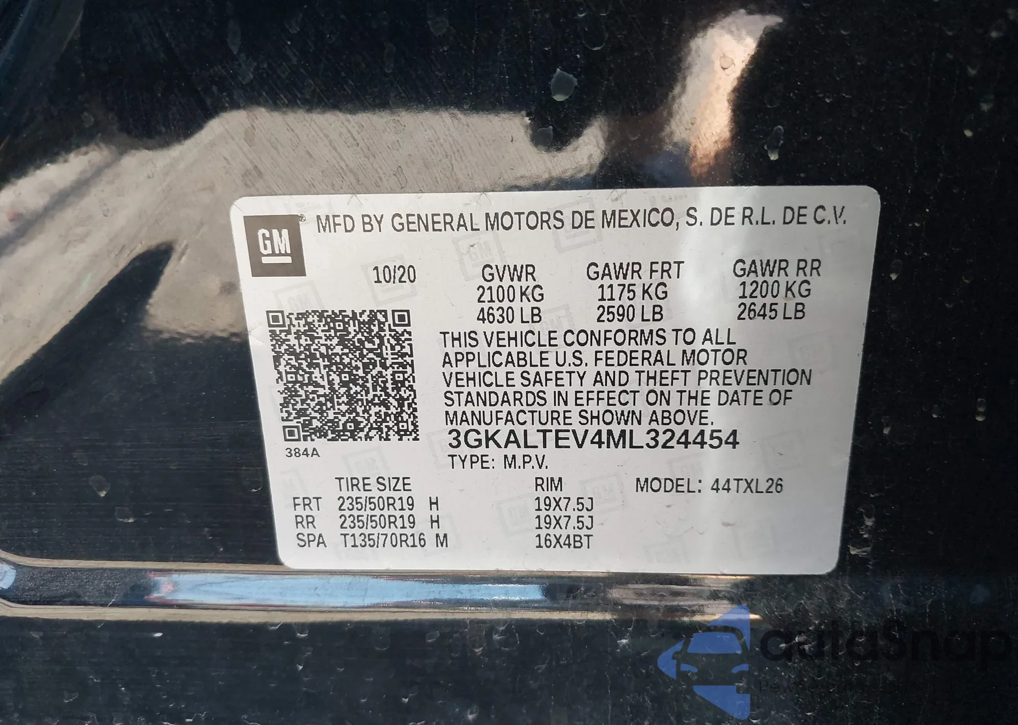 LOT: 43345528 VIN: 3GKALTEV4ML324454