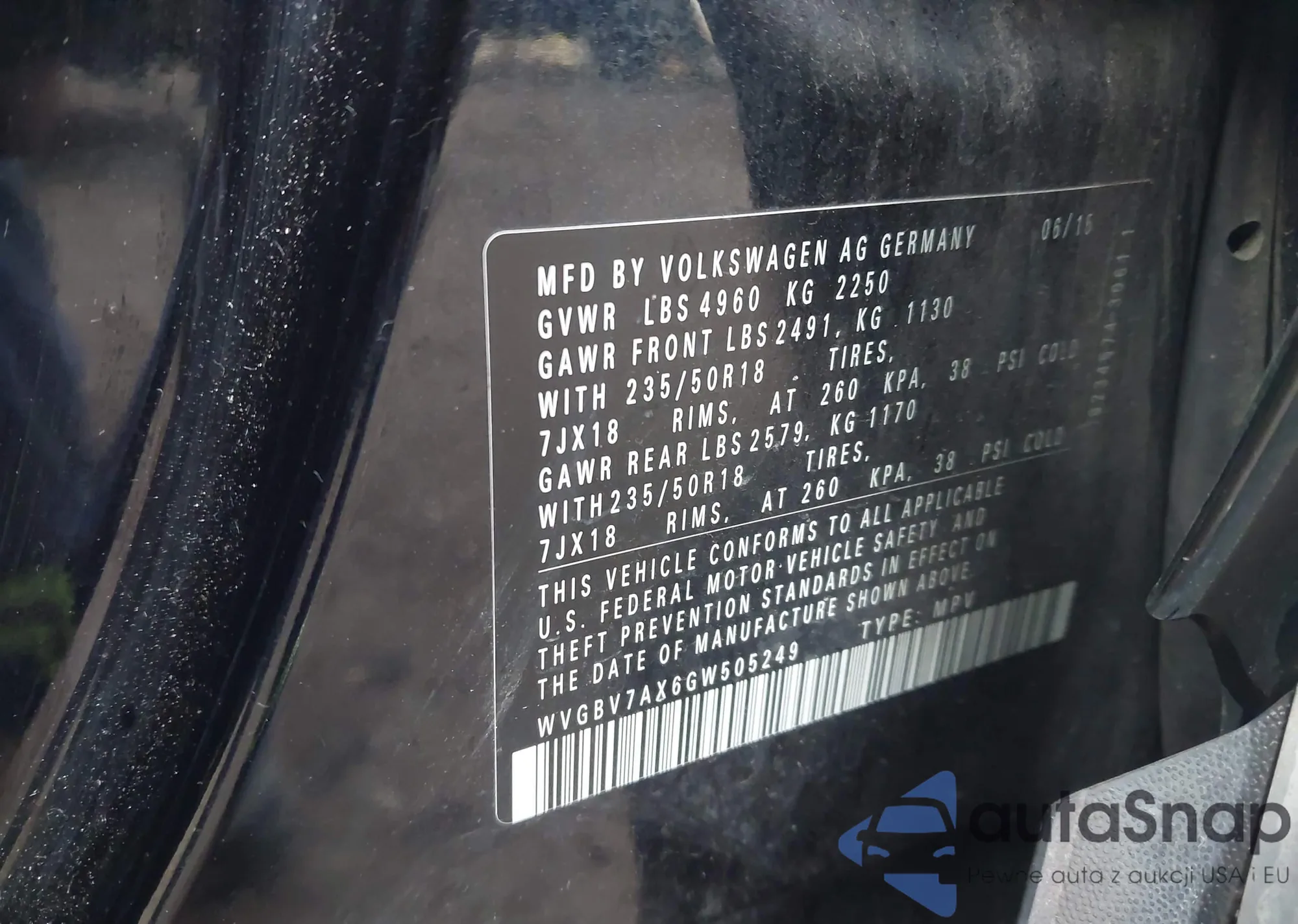 • VIN WVGBV7AX6GW505249