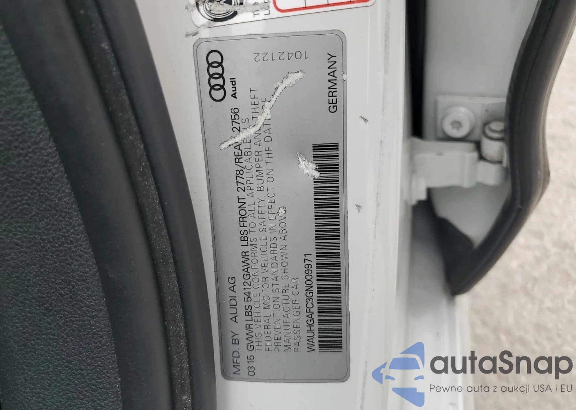 LOT: 71697425 VIN: WAUHGAFC3GN009971