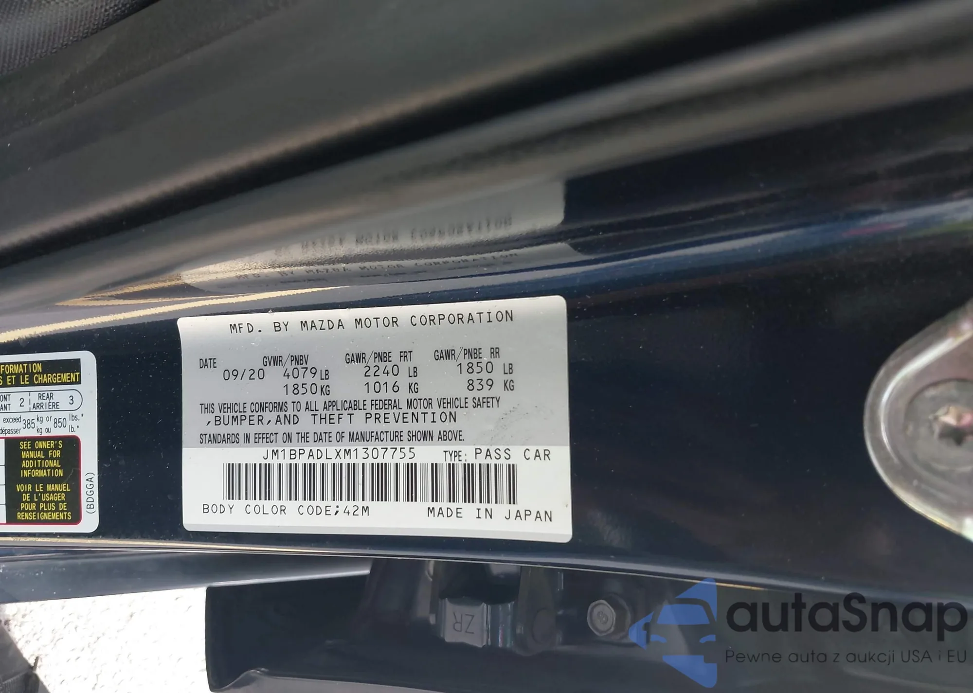 LOT: 43238932 VIN: JM1BPADLXM1307755