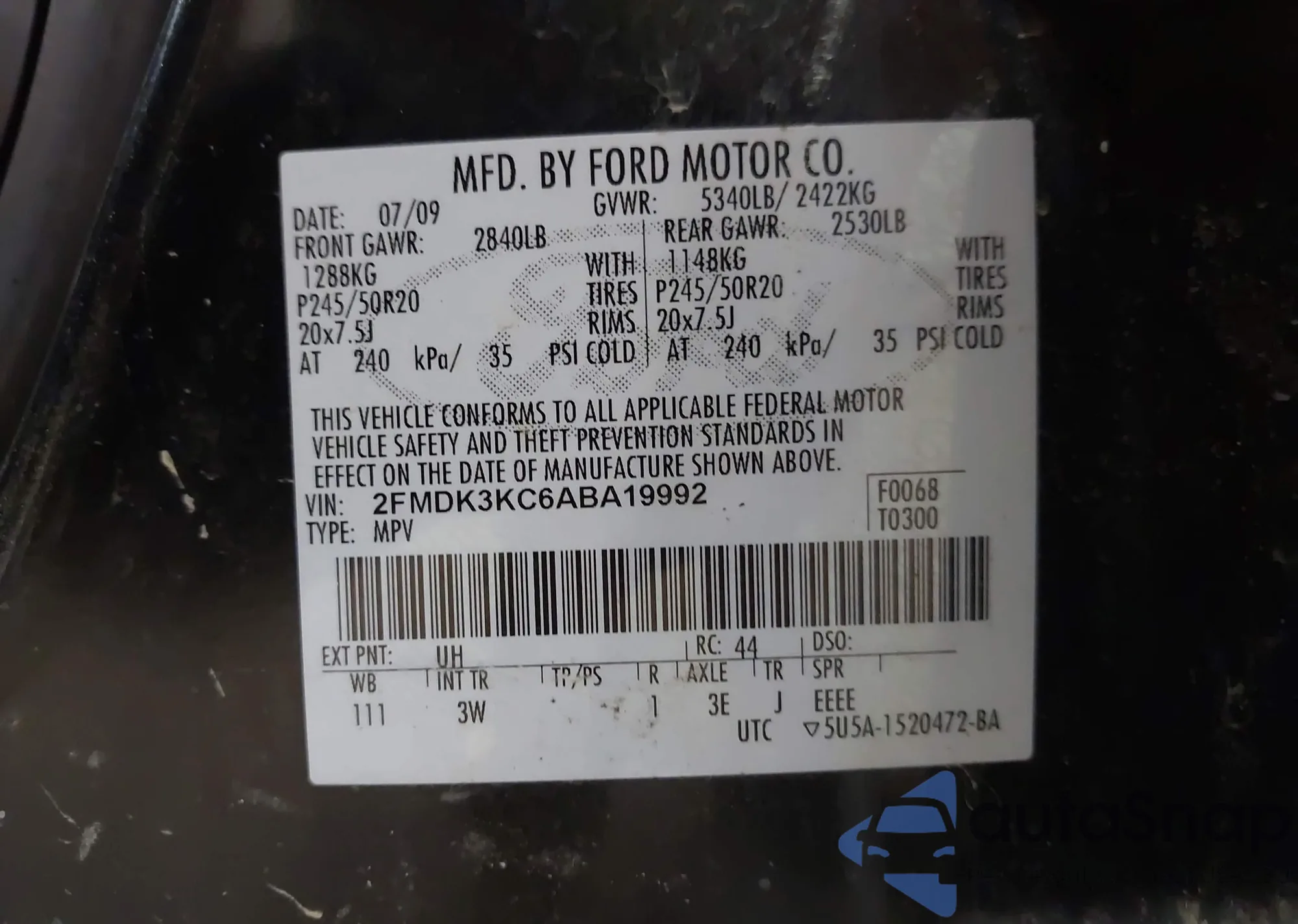 • VIN 2FMDK3KC6ABA19992
