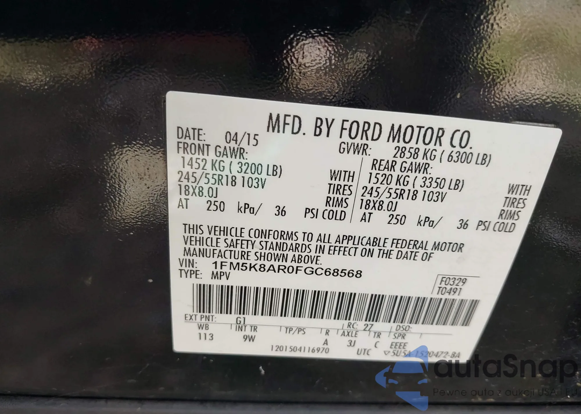 • VIN 1FM5K8AR0FGC68568