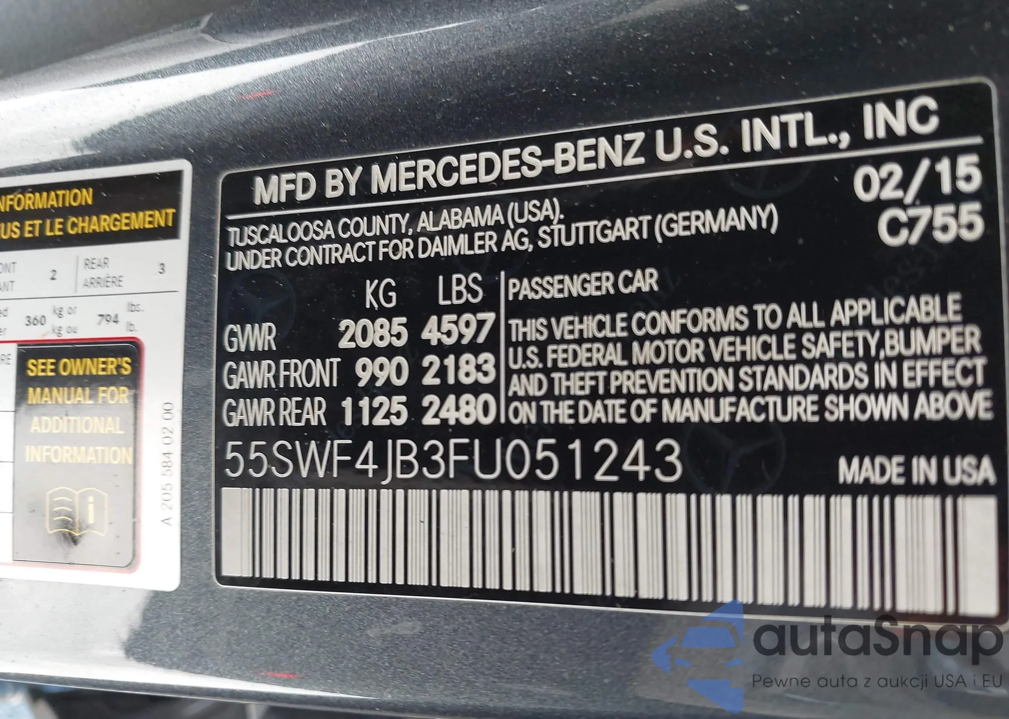 • VIN 55SWF4JB3FU051243