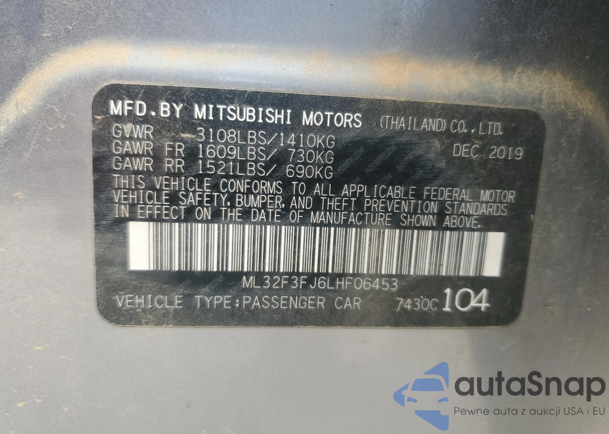 LOT: 81866545 VIN: ML32F3FJ6LHF06453