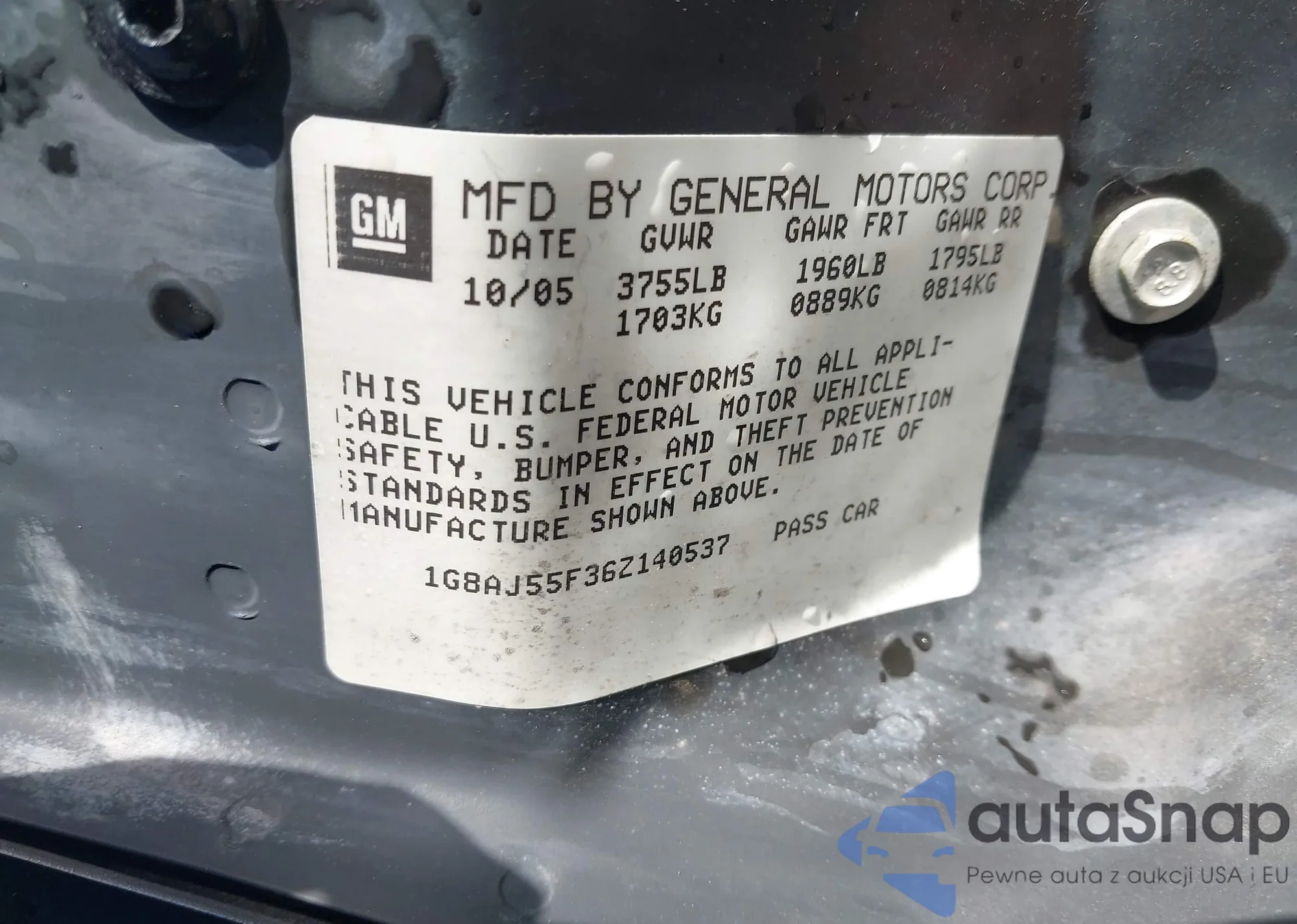 • VIN 1G8AJ55F36Z140537