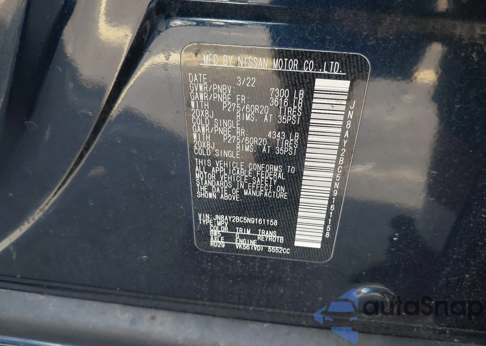 • VIN JN8AY2BC5N9161158