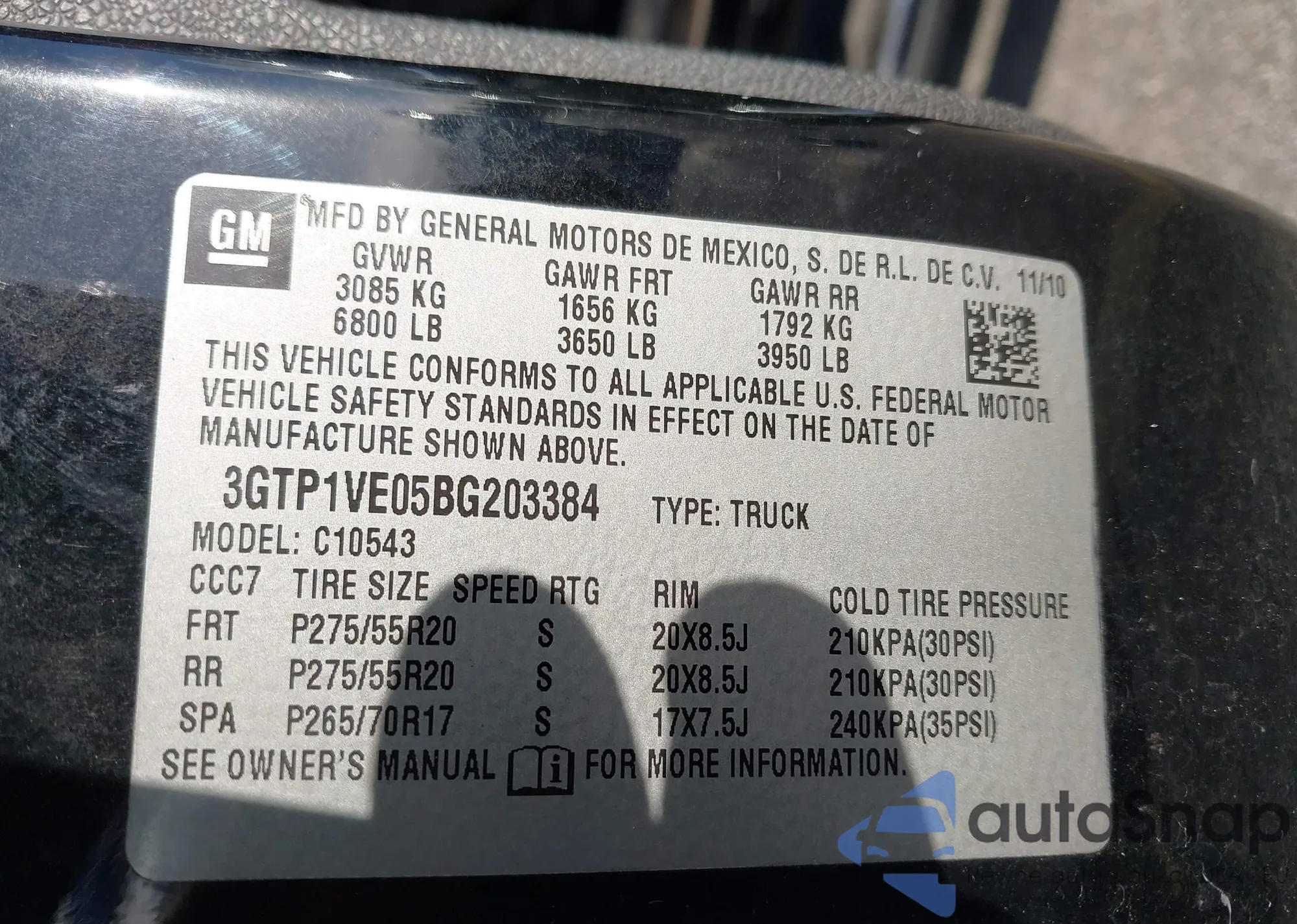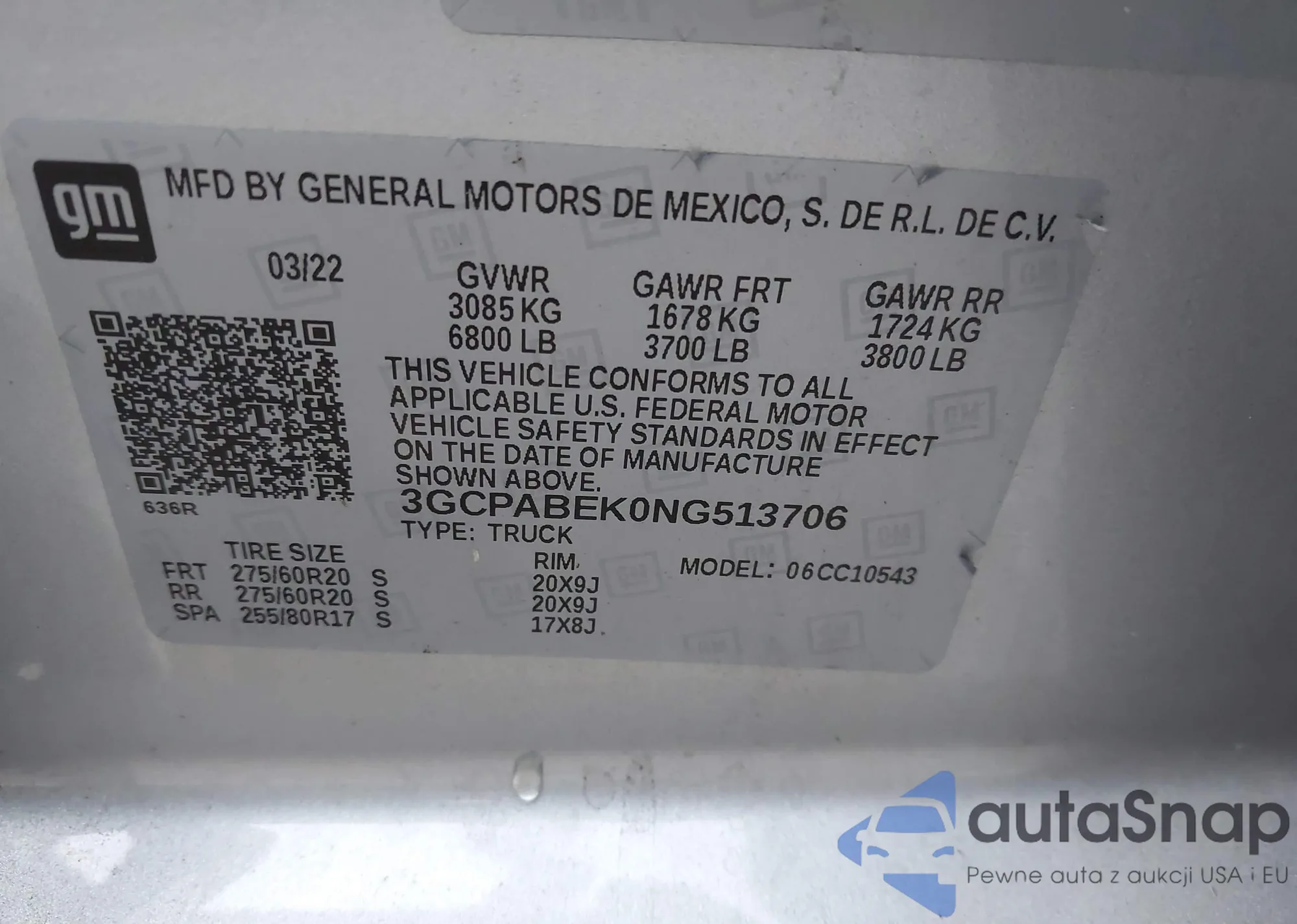 • VIN 3GCPABEK0NG513706