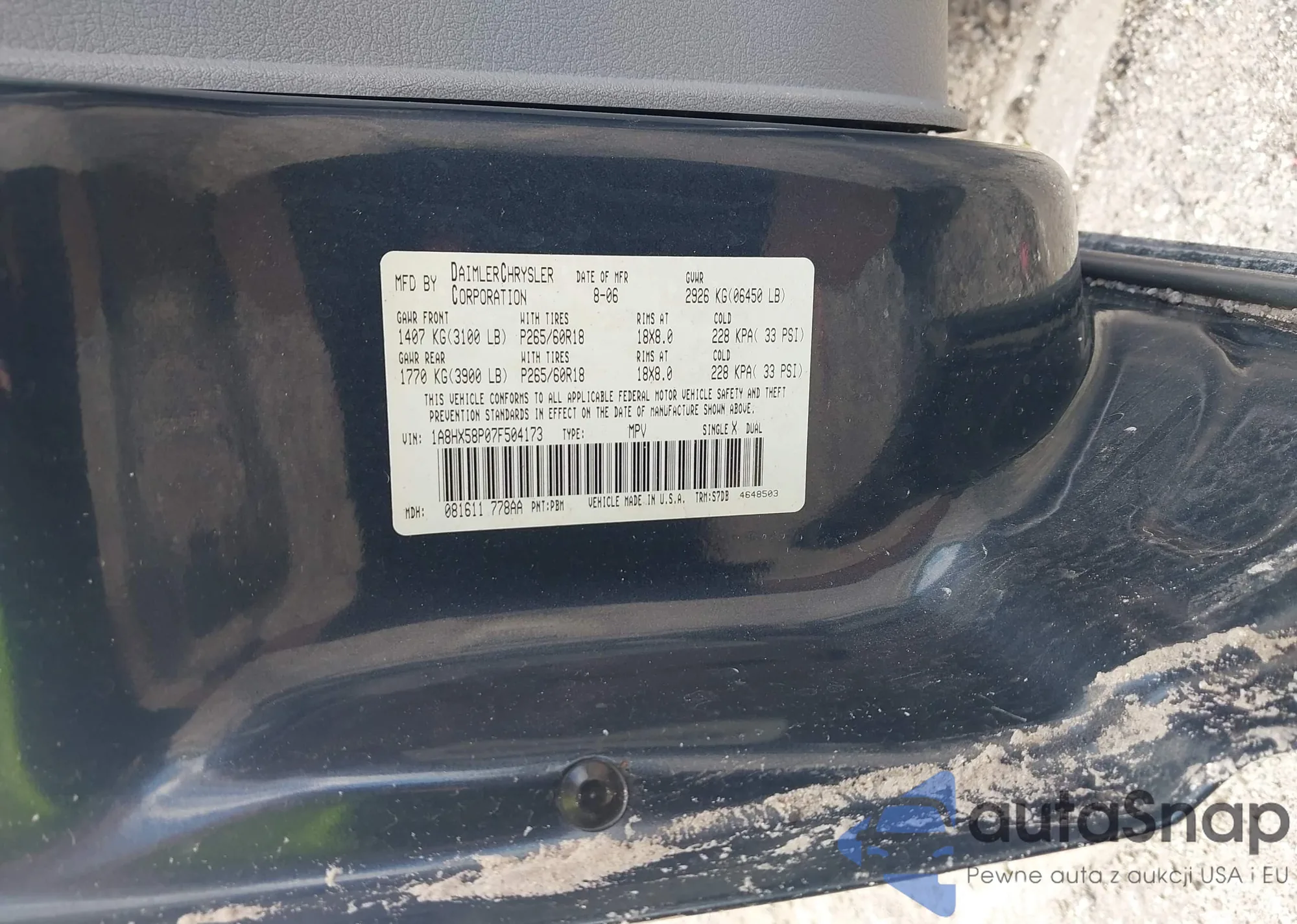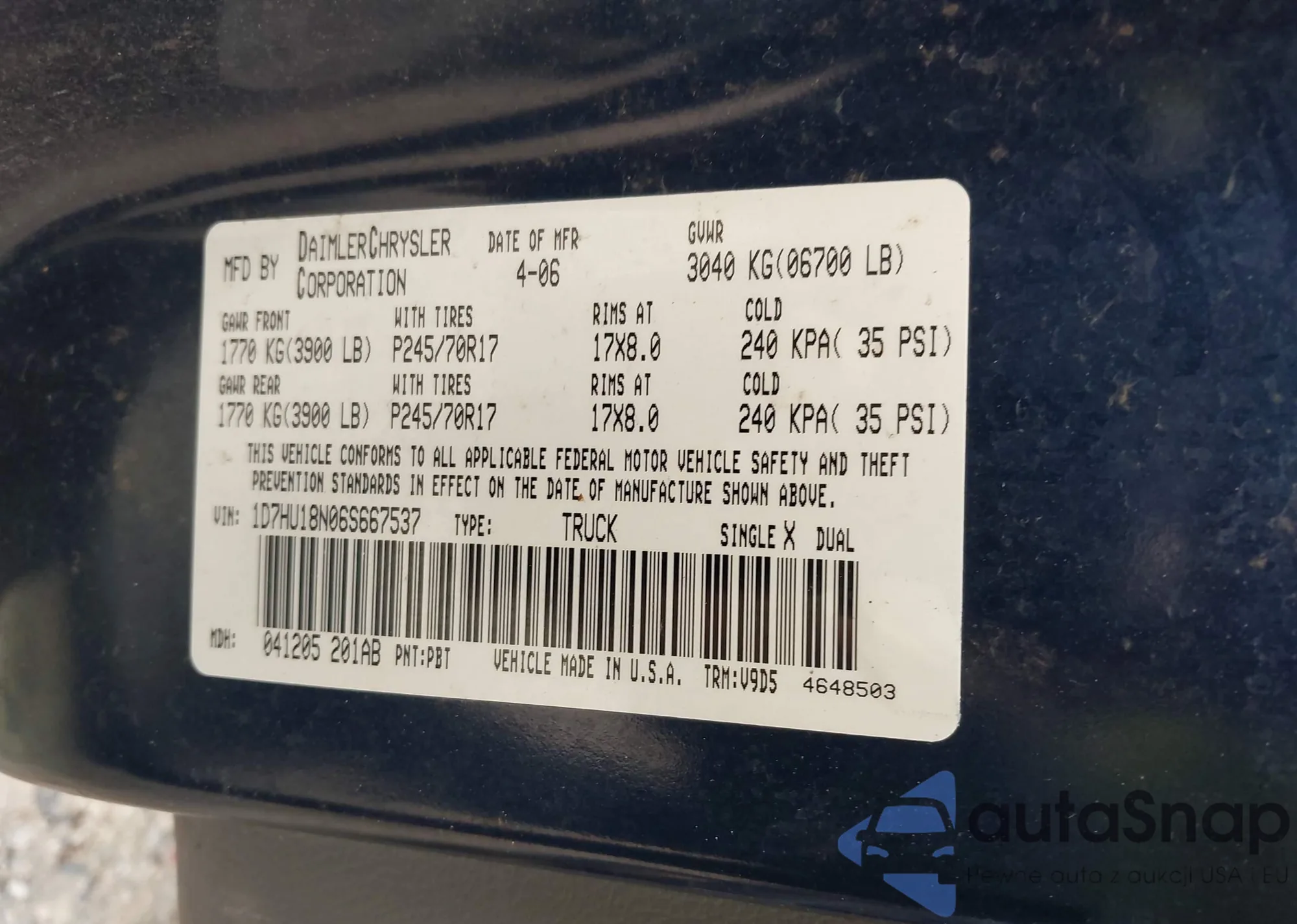LOT: 43405689 VIN: 1D7HU18N06S667537