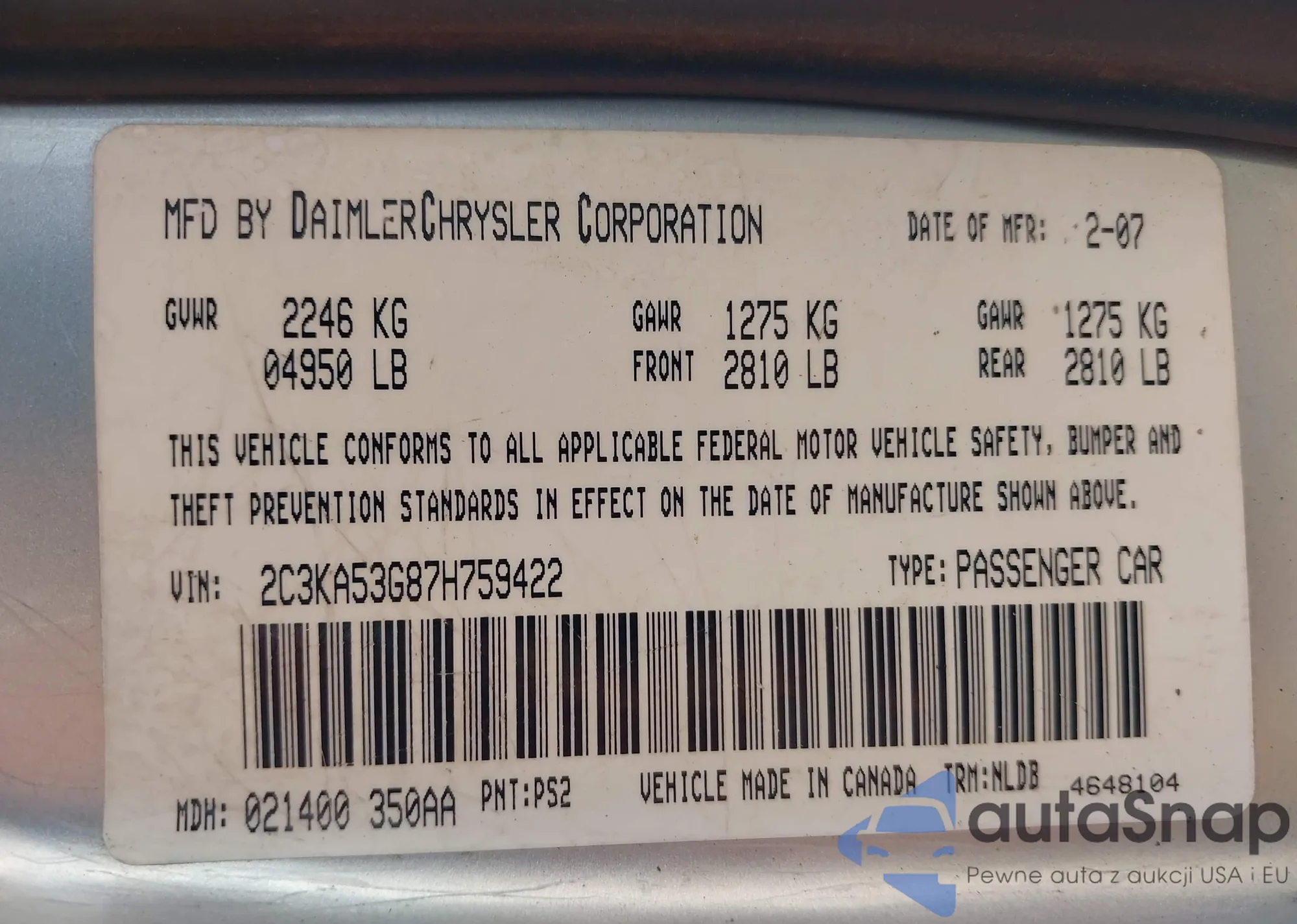 LOT: 43374272 VIN: 1A8HW58227F509298
