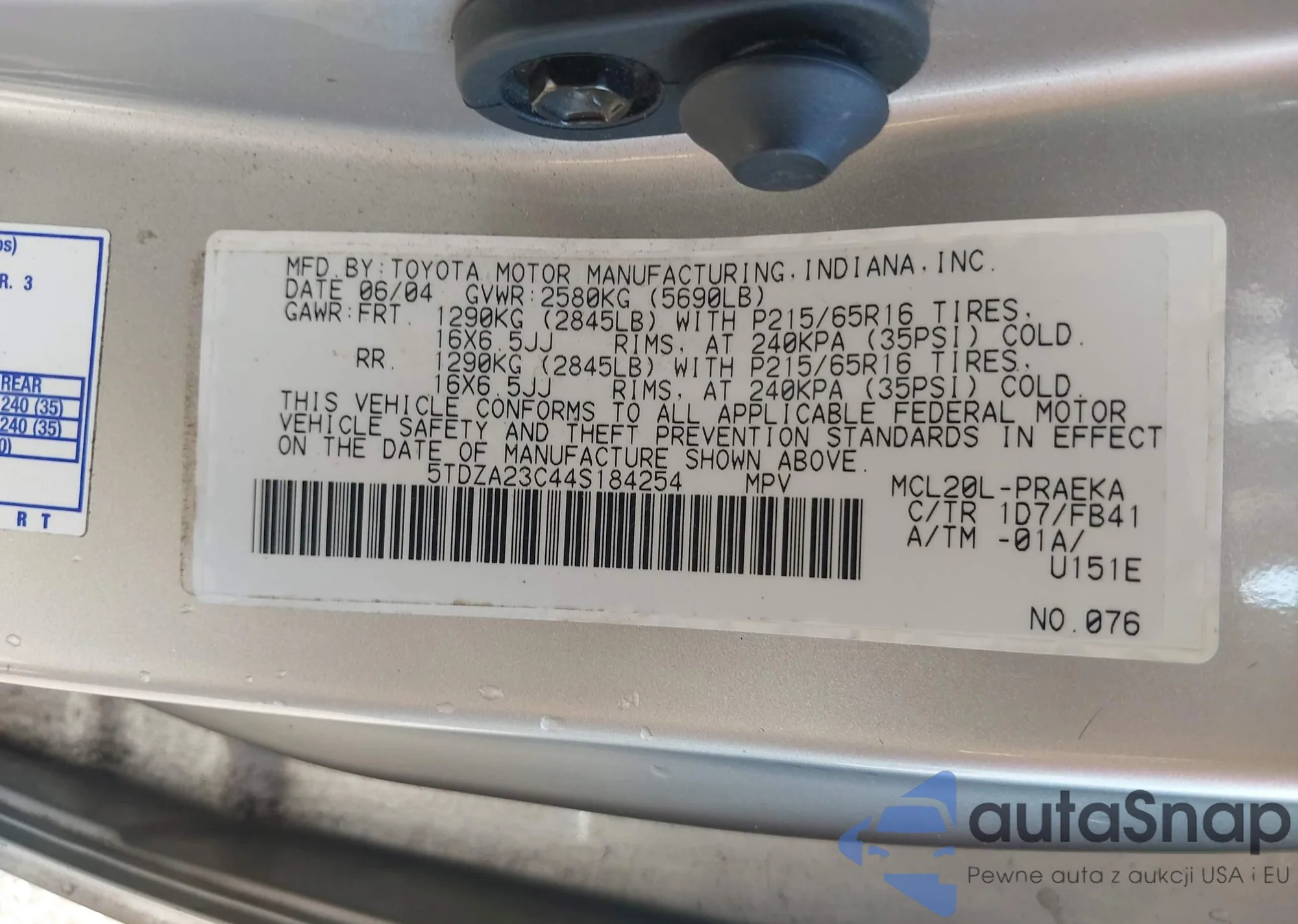 LOT: 43415242 VIN: 5TDZA23C44S184254