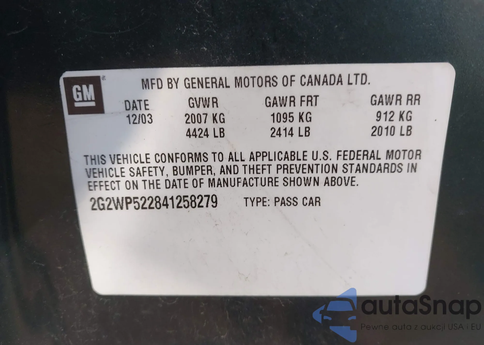 LOT: 43480072 VIN: 1G2ZG58NX74147448