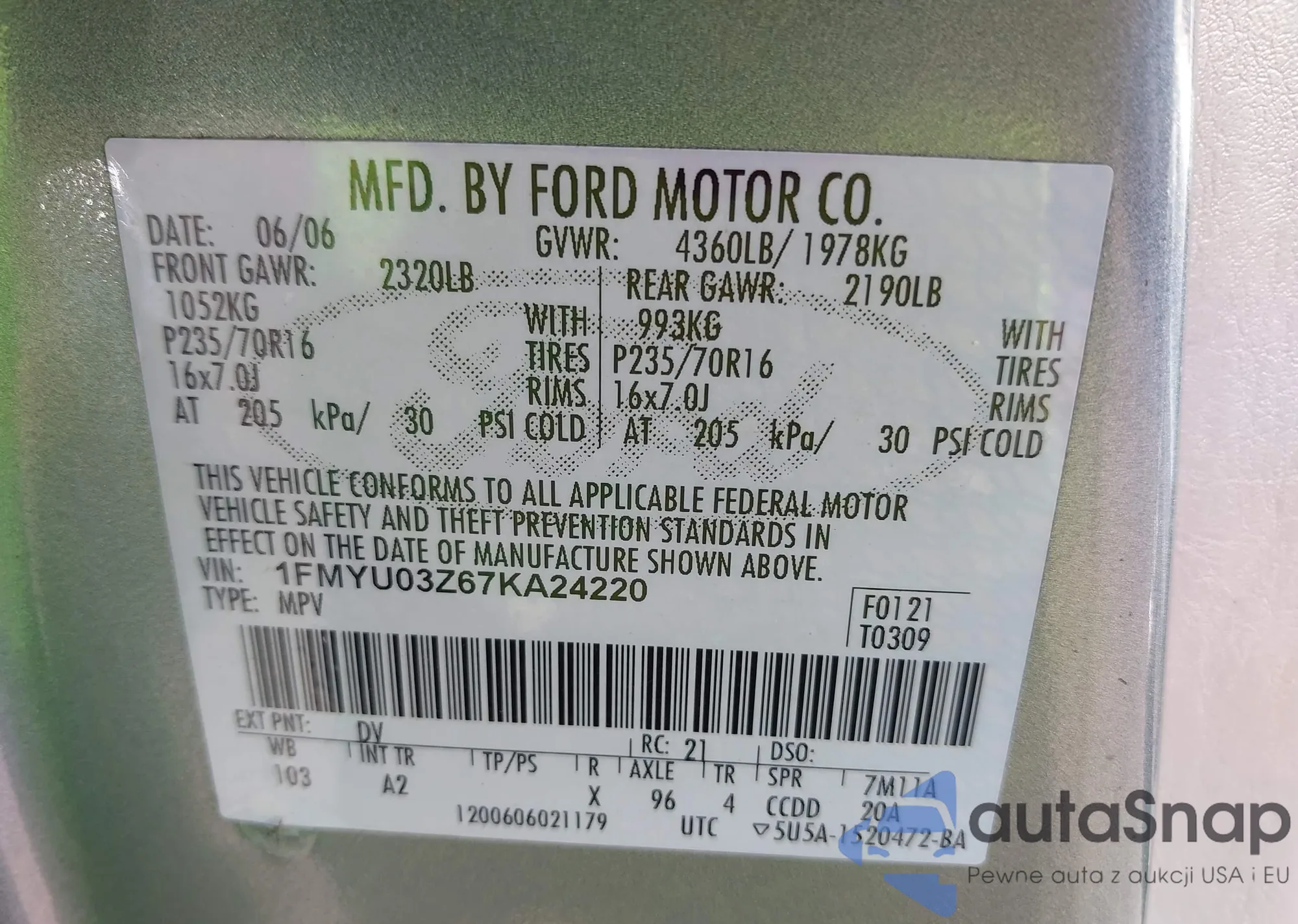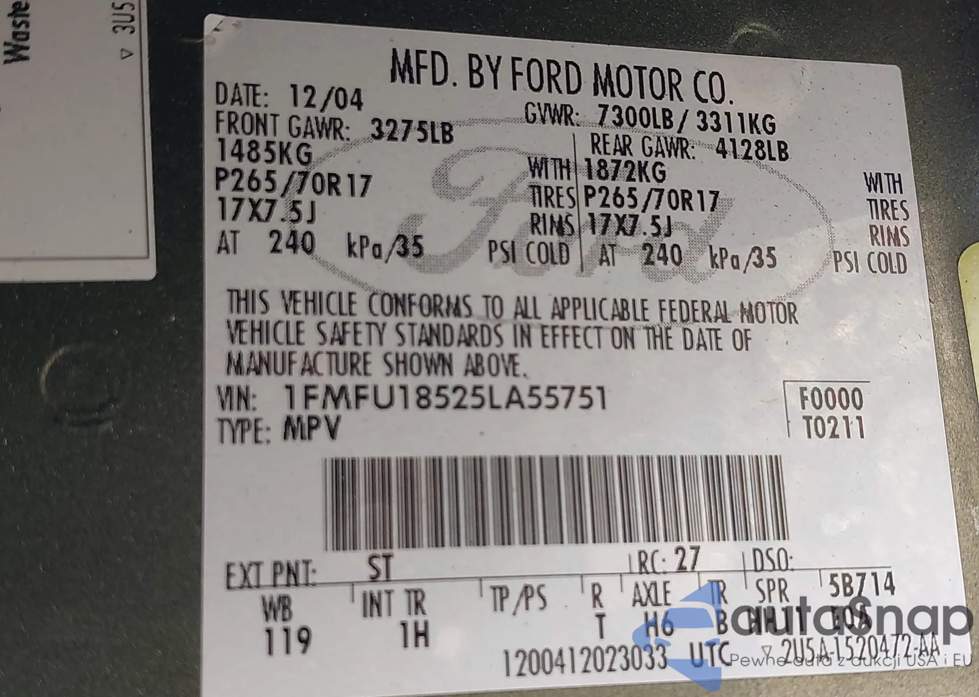 LOT: 43452081 VIN: 1FMFU18525LA55751