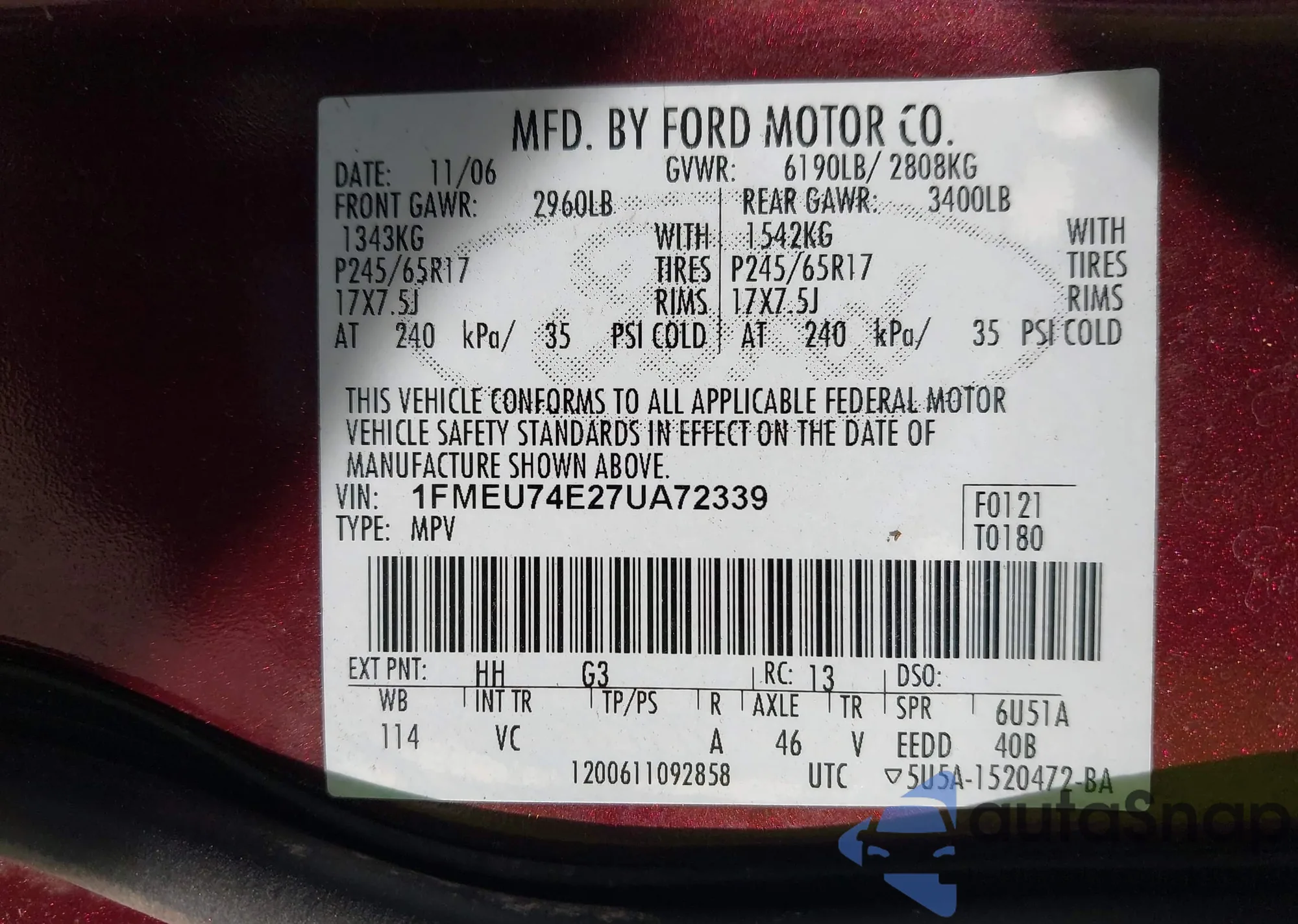 • VIN 1FMEU74E27UA72339