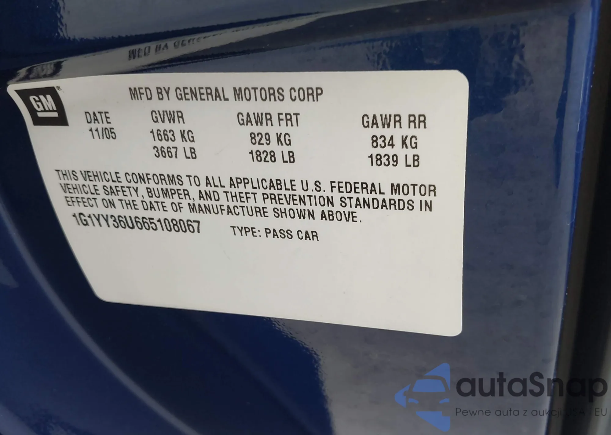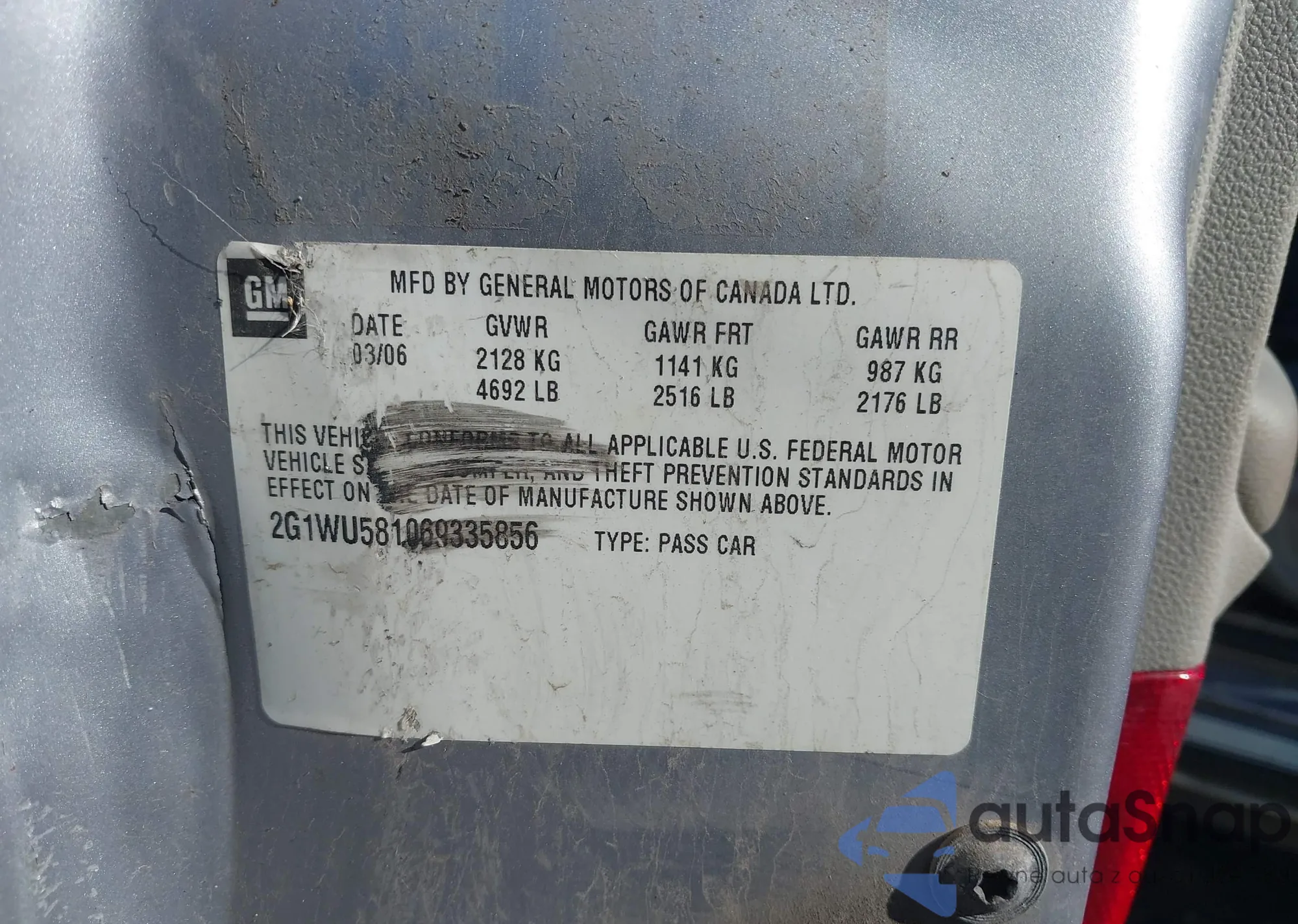 • VIN 2G1WU581069335856