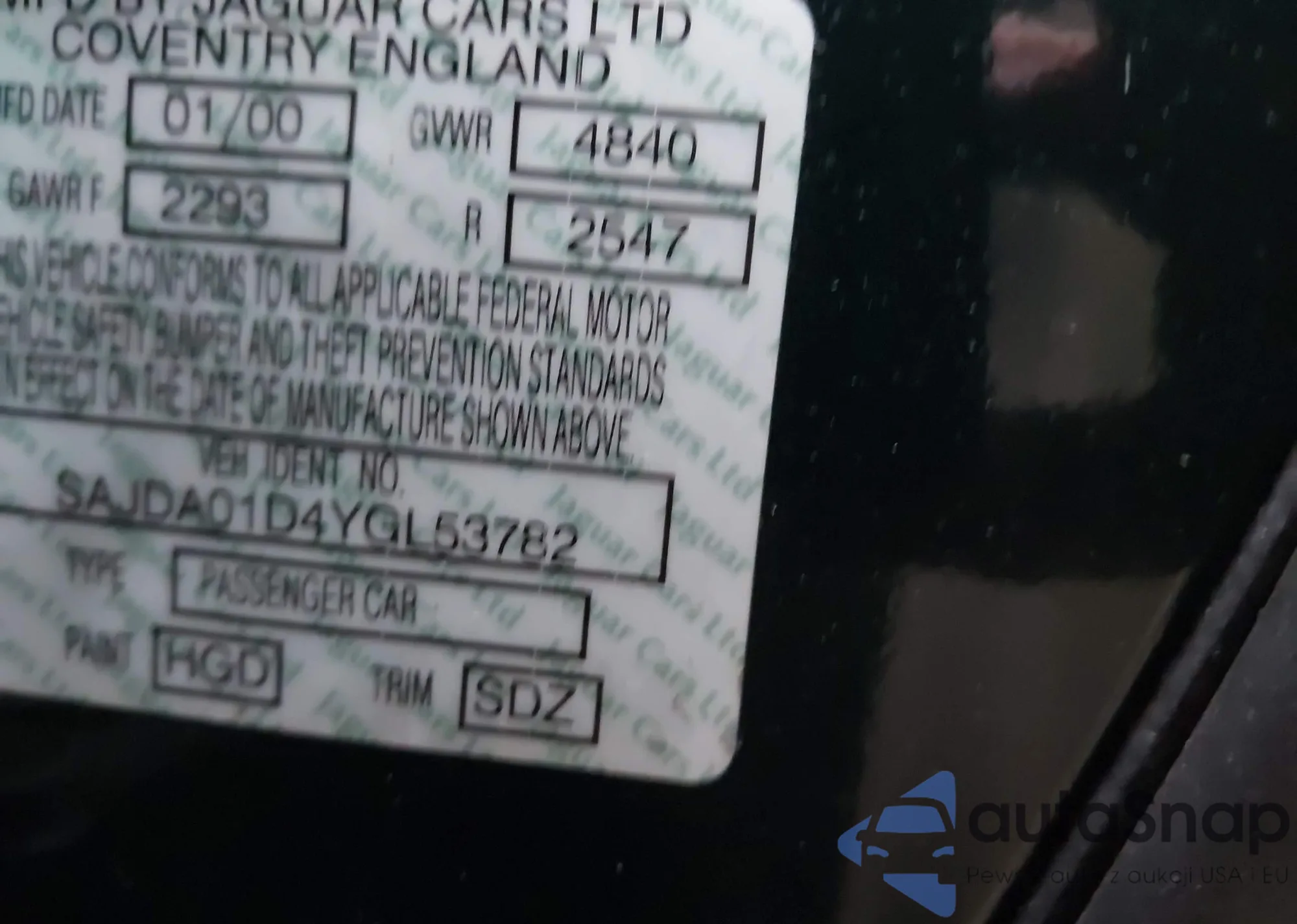 2000 Jaguar S-Type 4.0L V8 из США, поврежденный, VIN SAJDA01D4YGL53782