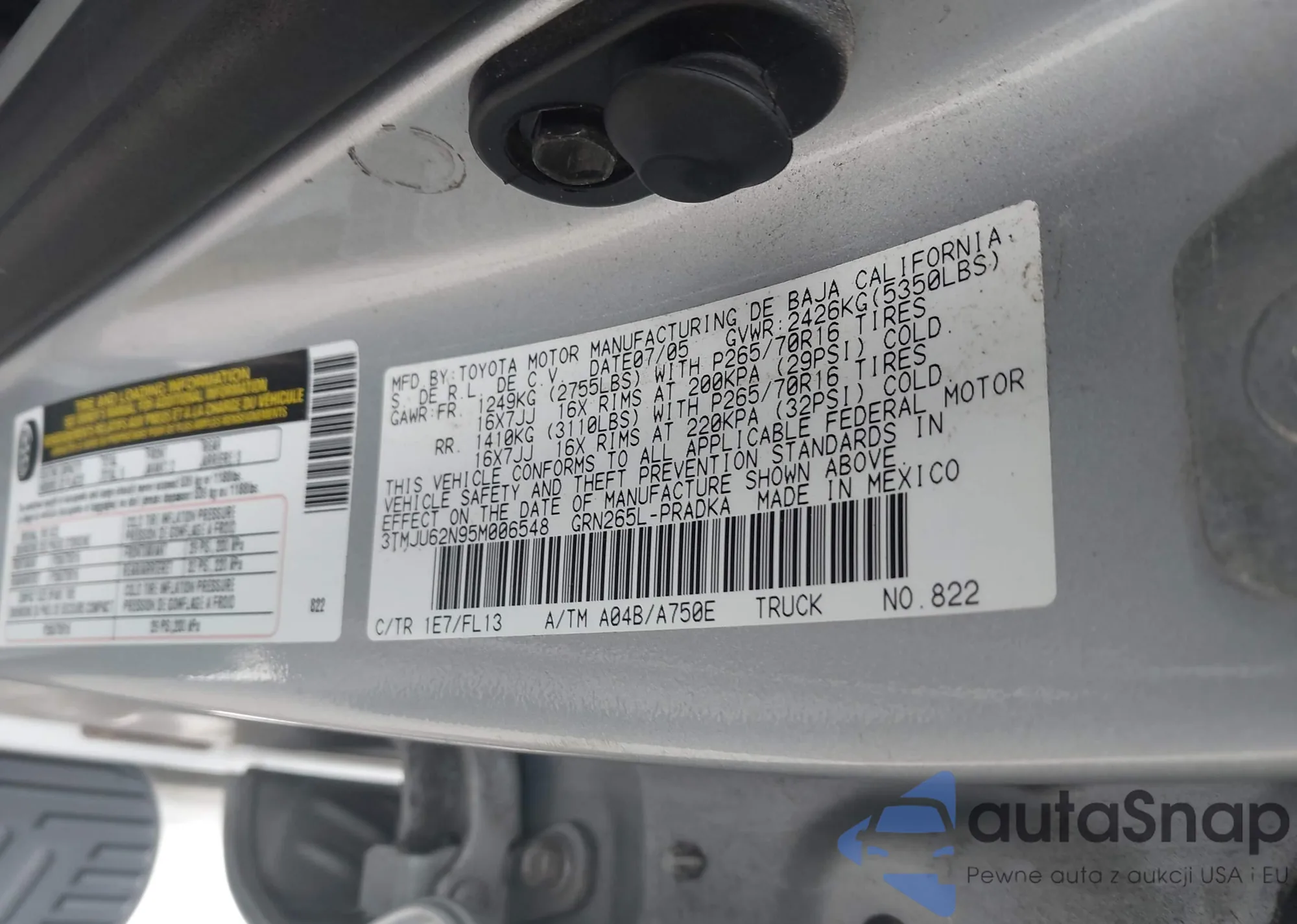 LOT: 43581357 VIN: JTKDE177350005494