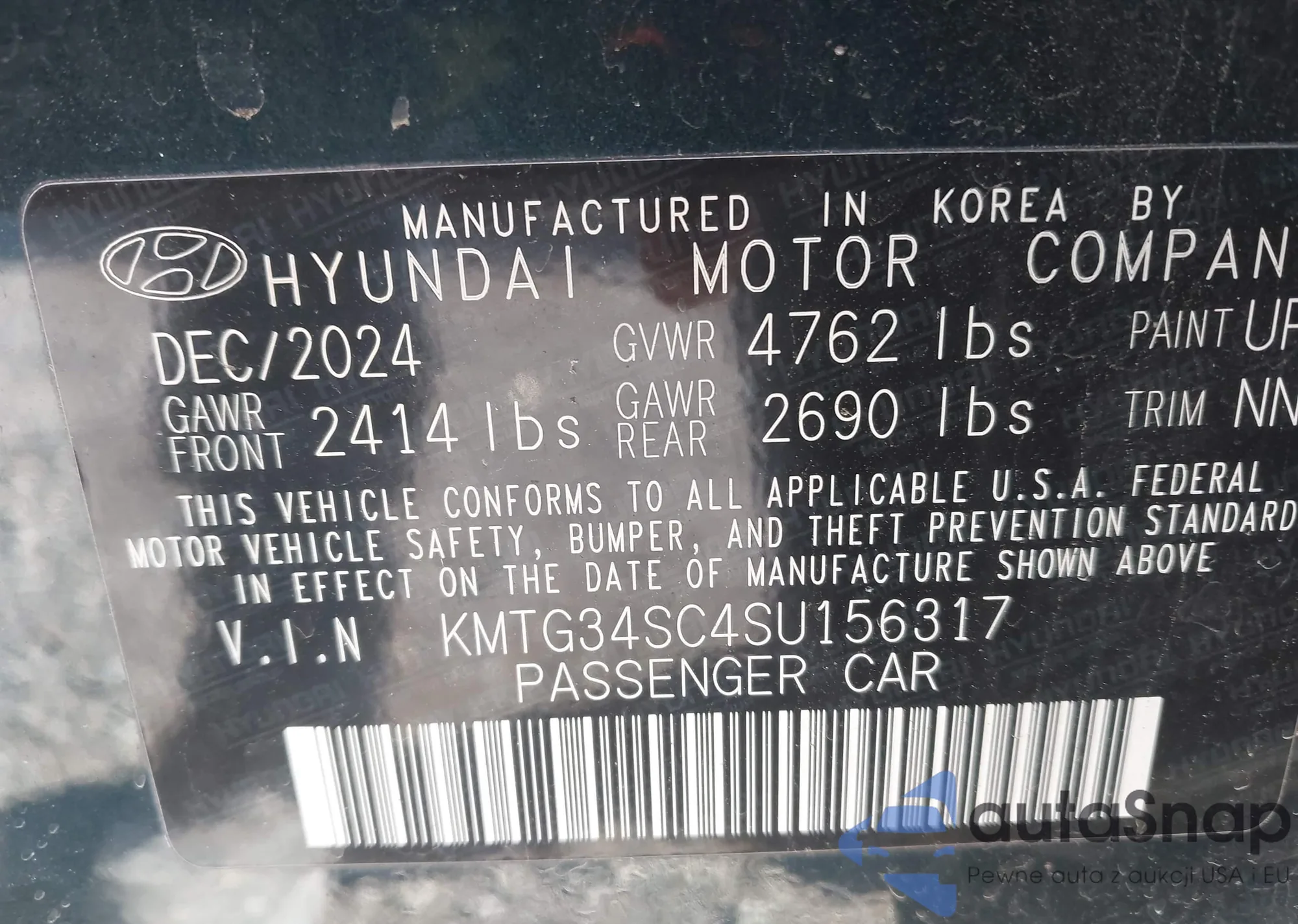• VIN KMTG34SC4SU156317