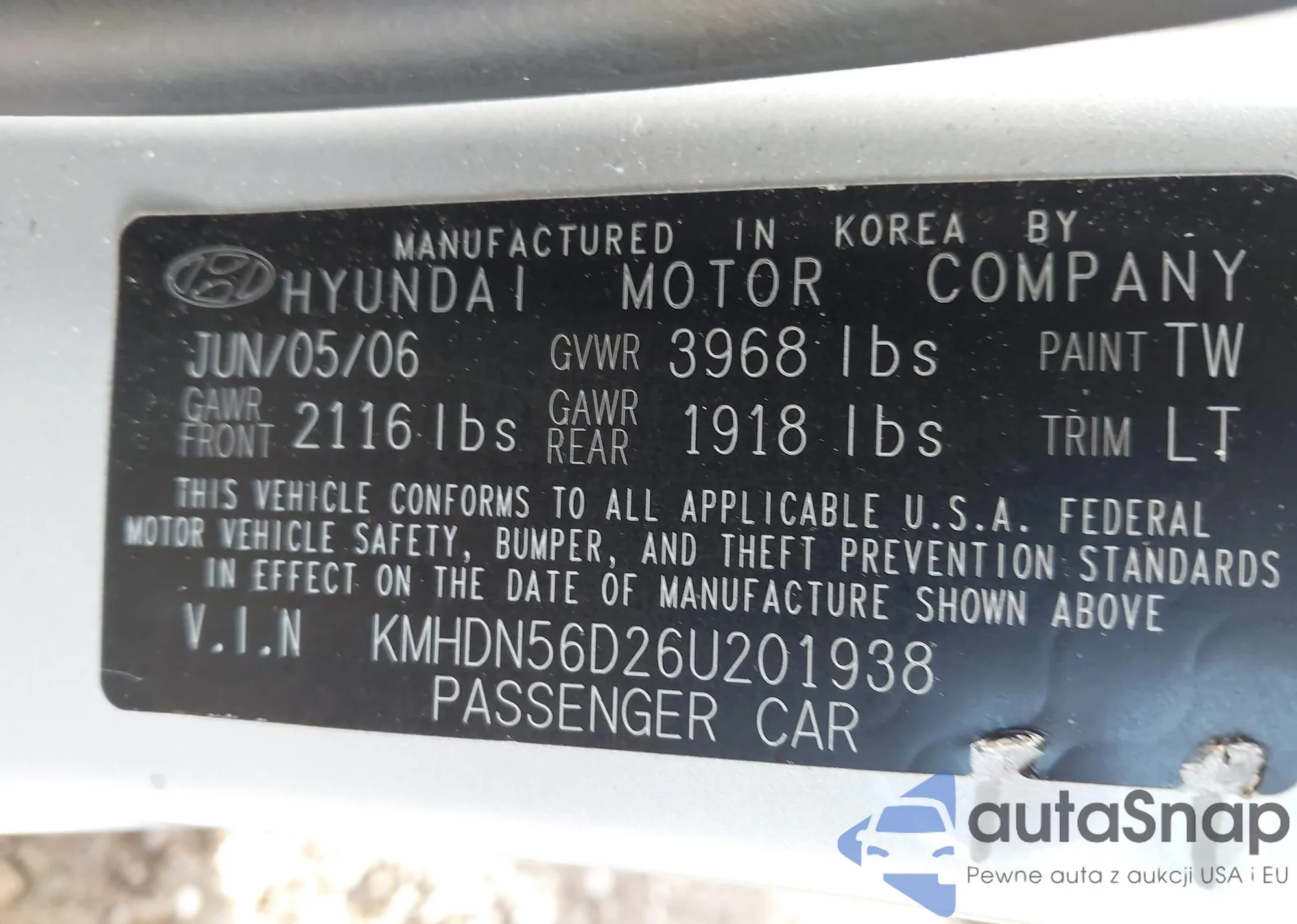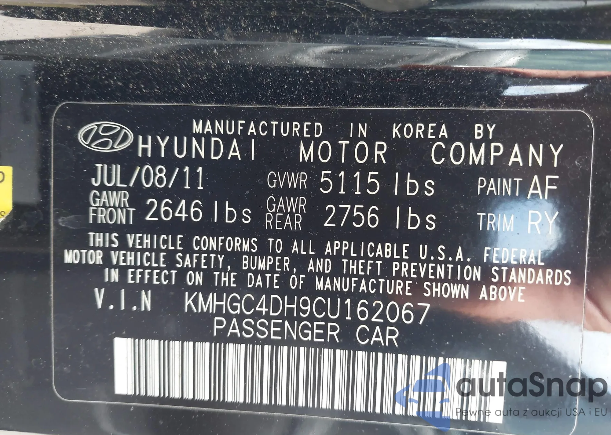 • VIN KMHGC4DH9CU162067