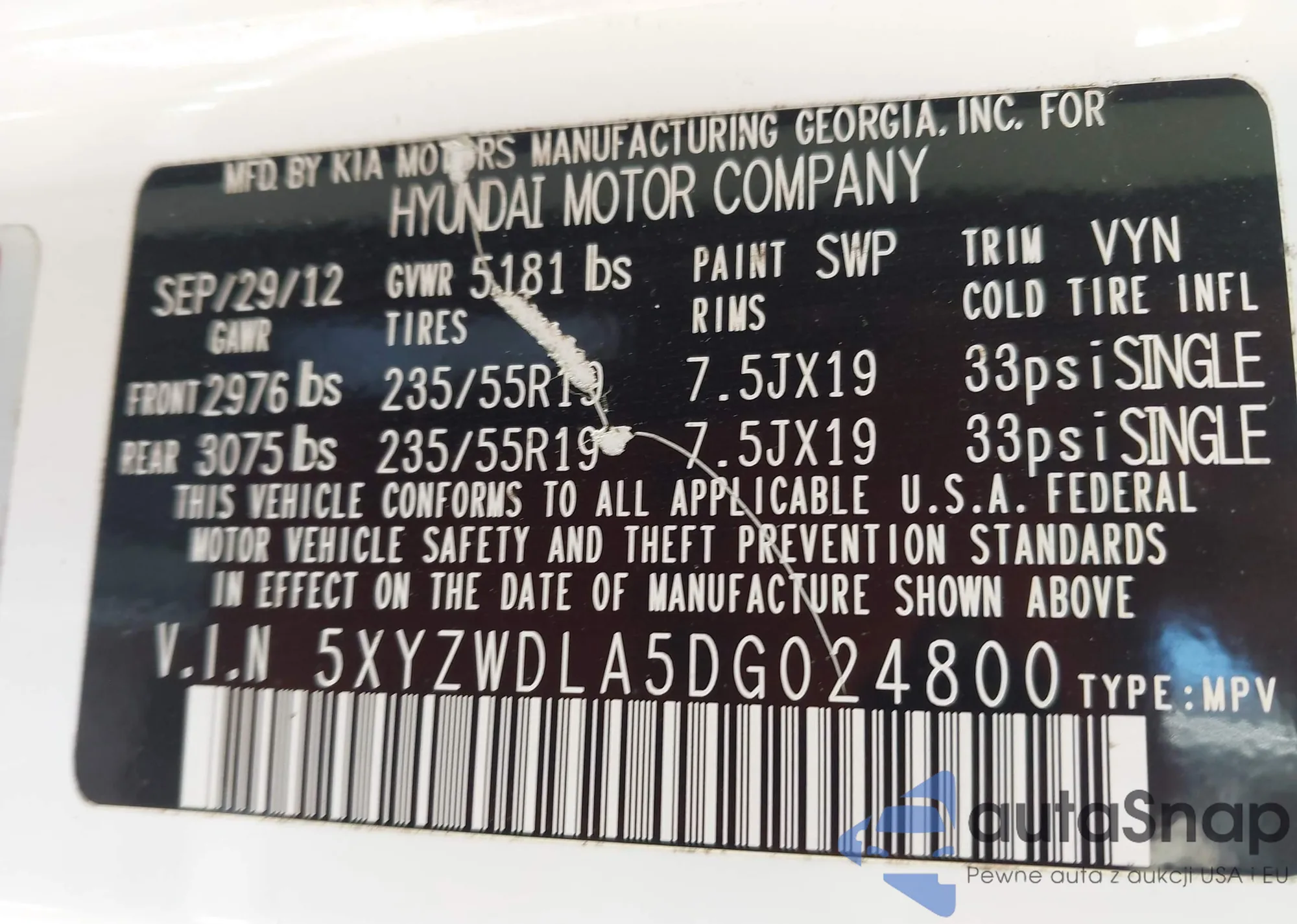• VIN 5XYZWDLA5DG024800
