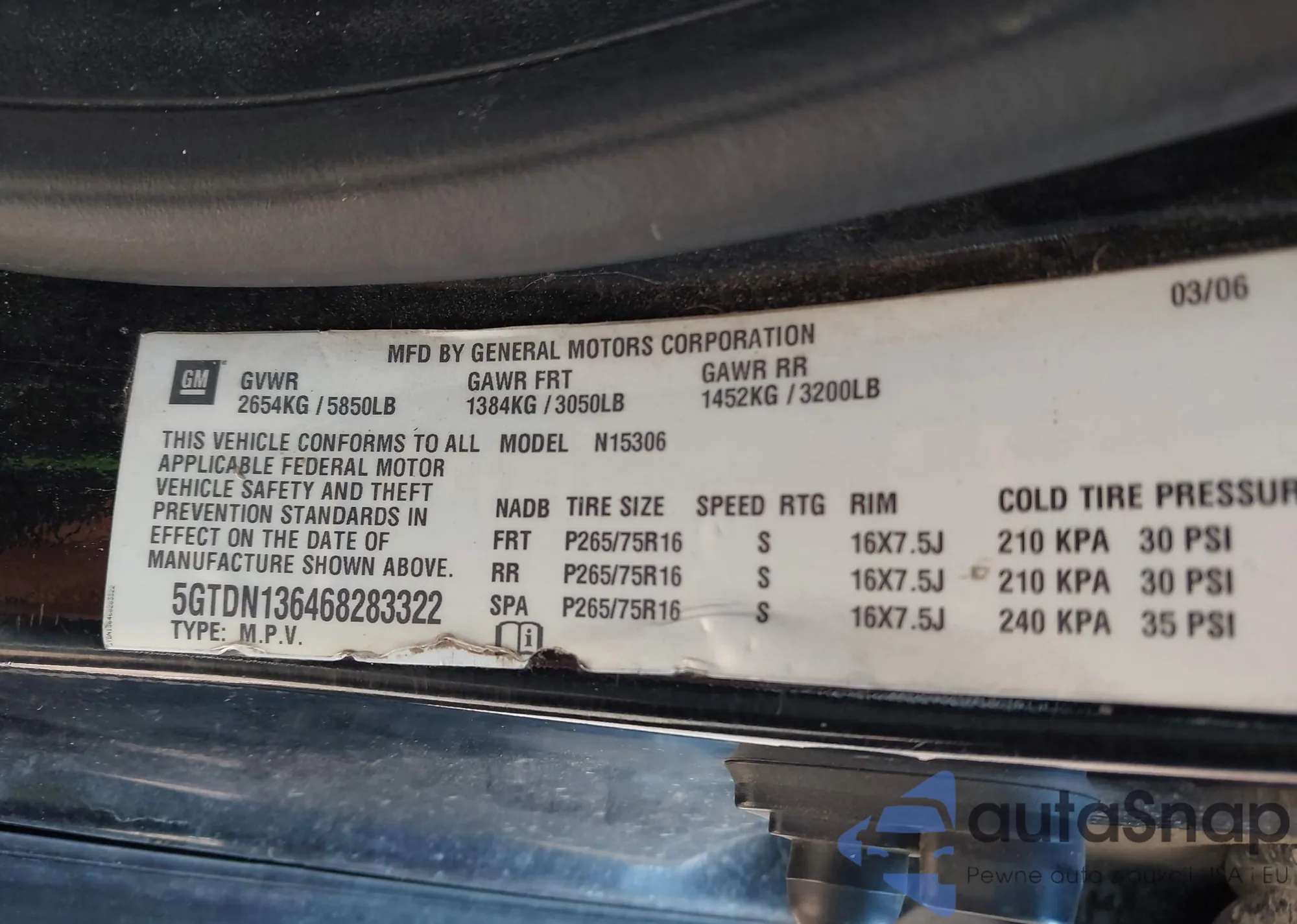 LOT: 43526630 VIN: 5GTDN136468283322