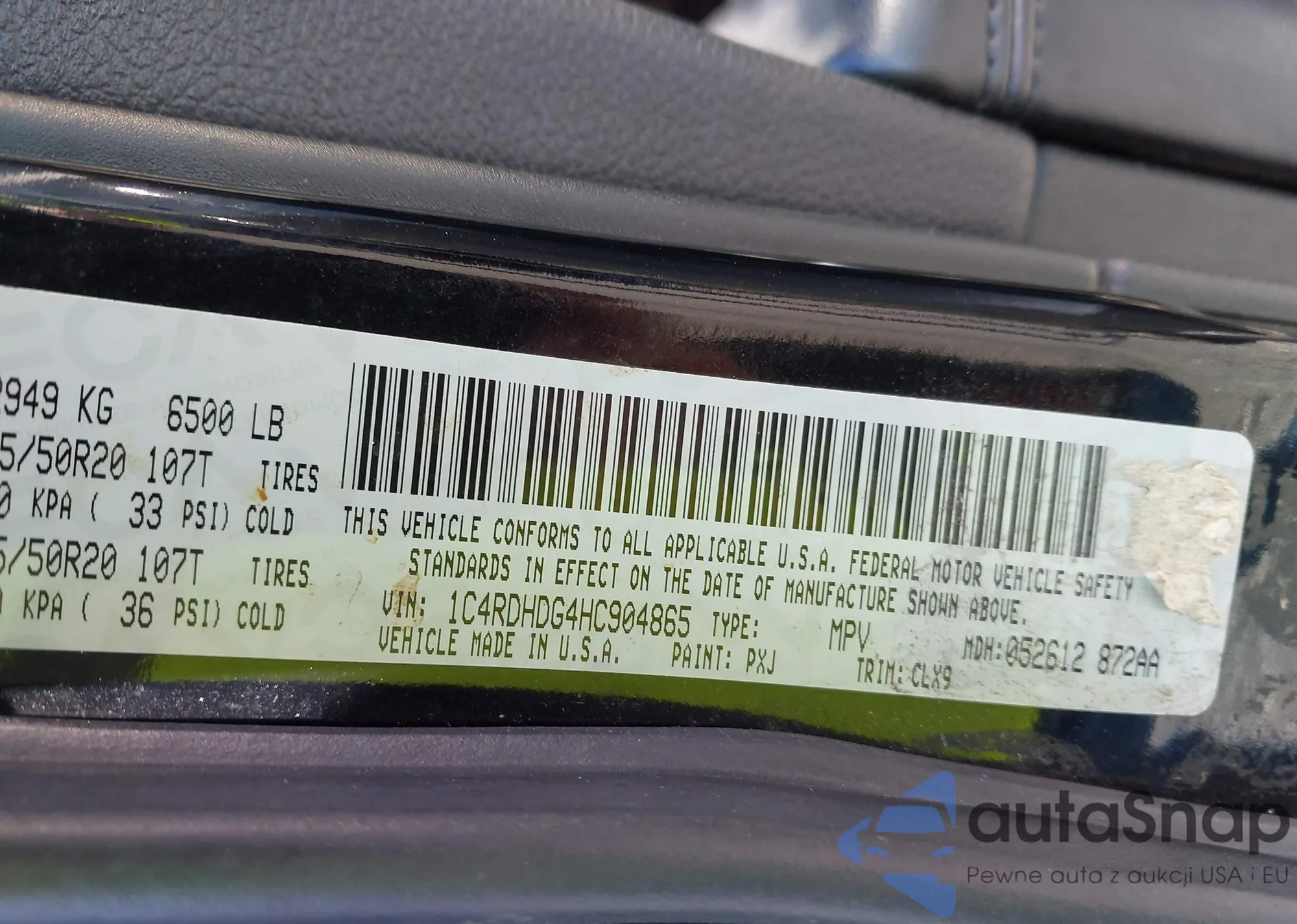 • VIN 1C4RDHDG4HC904865