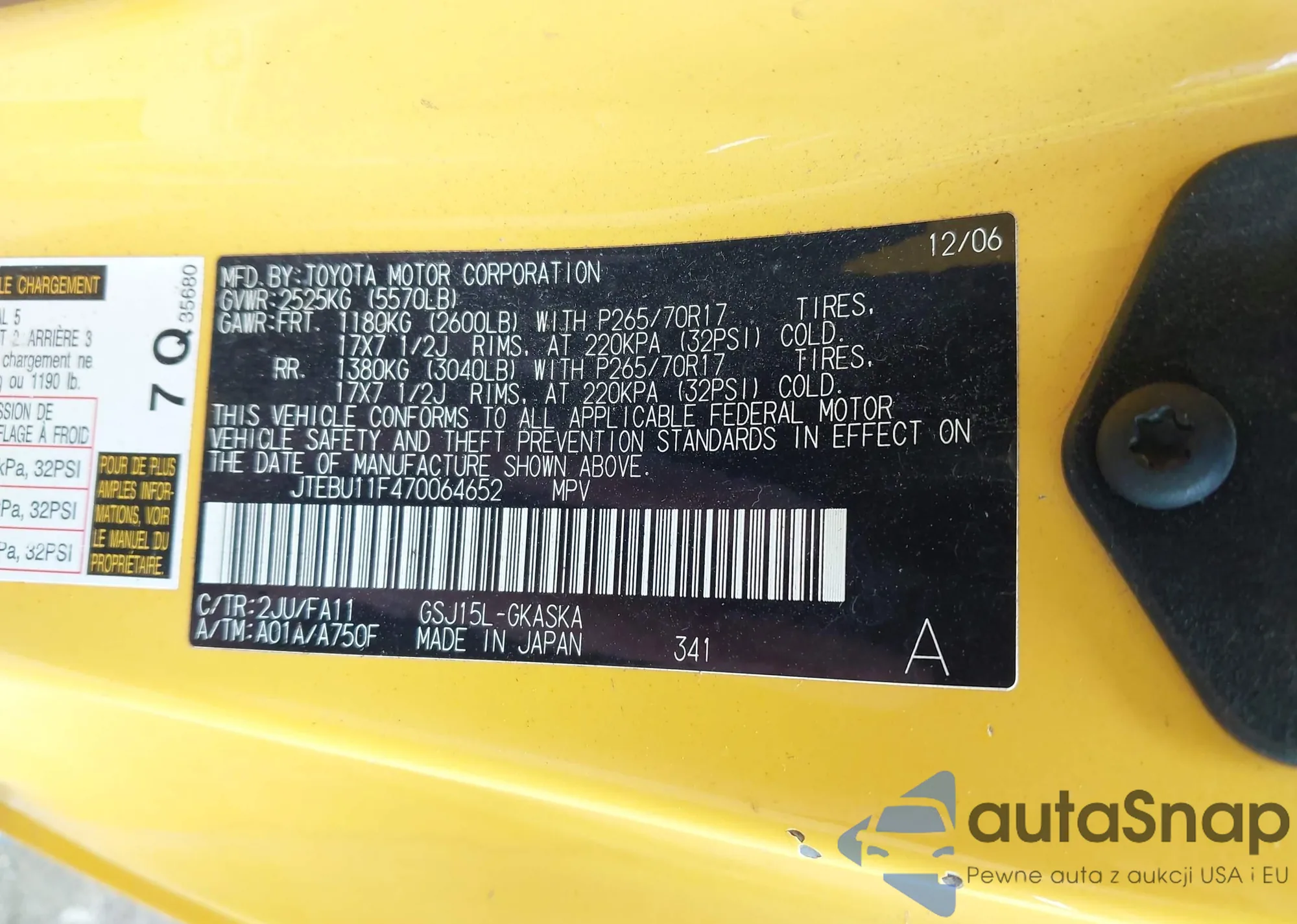 LOT: 43388613 VIN: JTEBU11F470064652