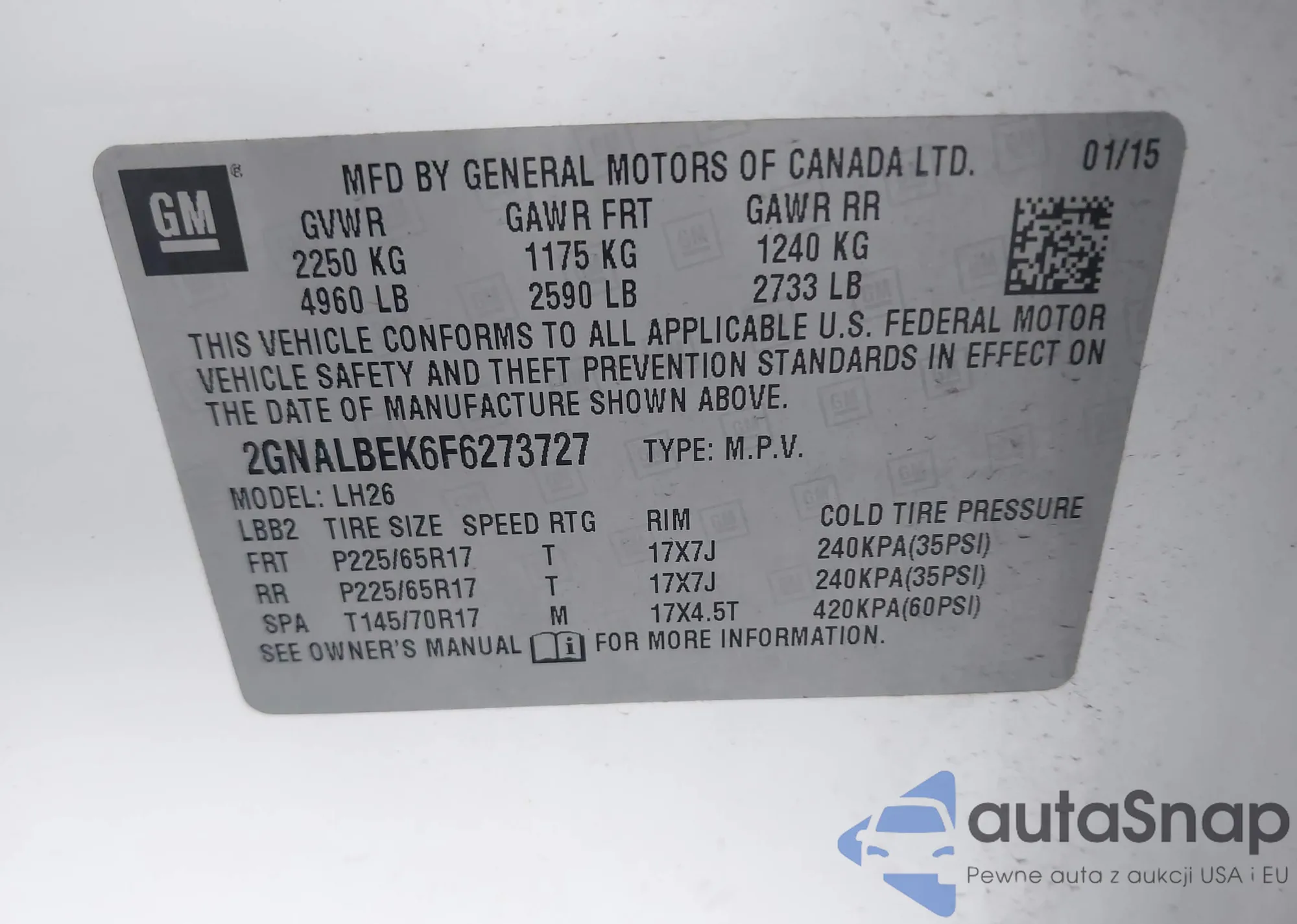 LOT: 43378216 VIN: 1GNKRFED9EJ110177