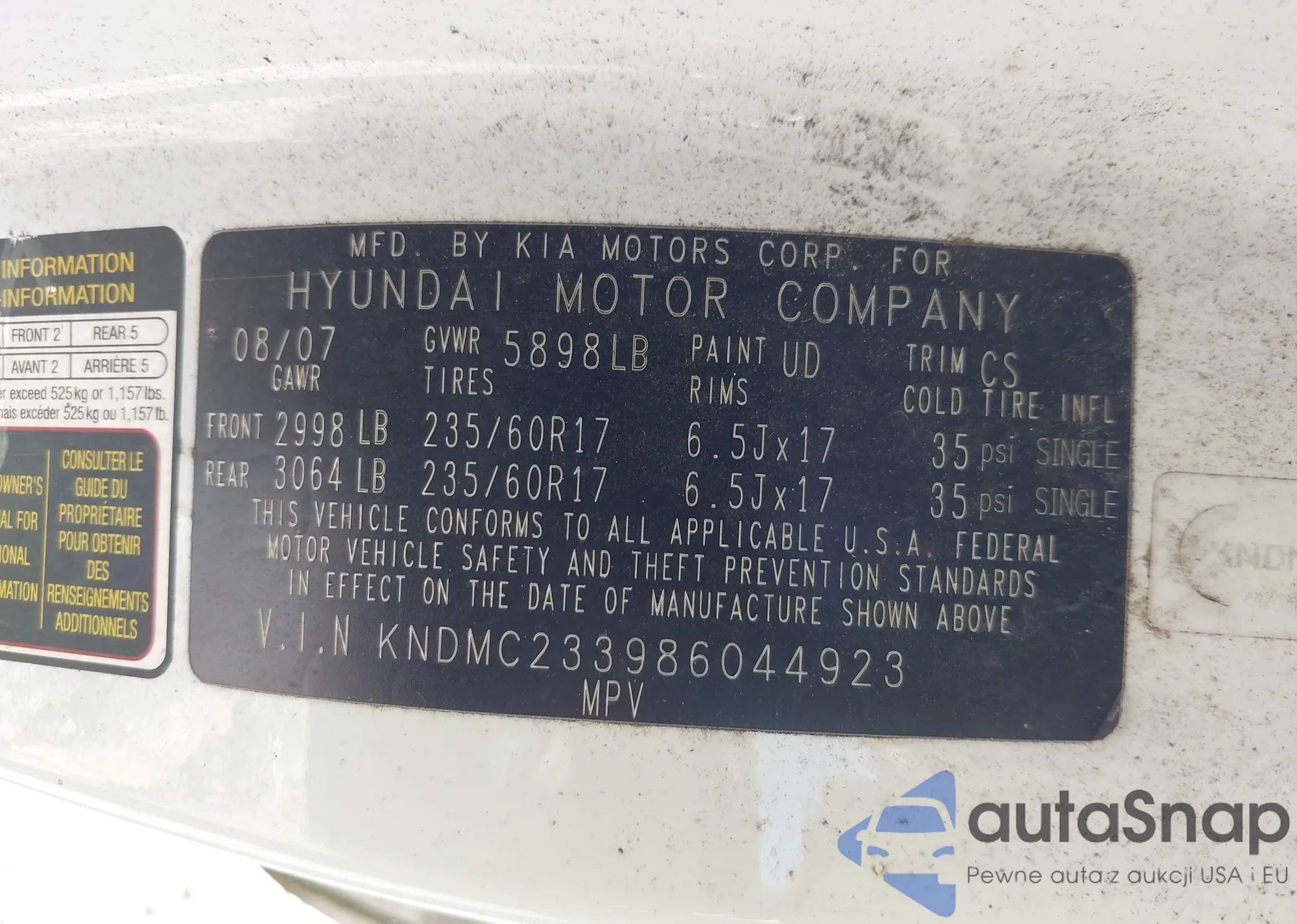 LOT: 43304017 VIN: KM8J3CA27GU124990