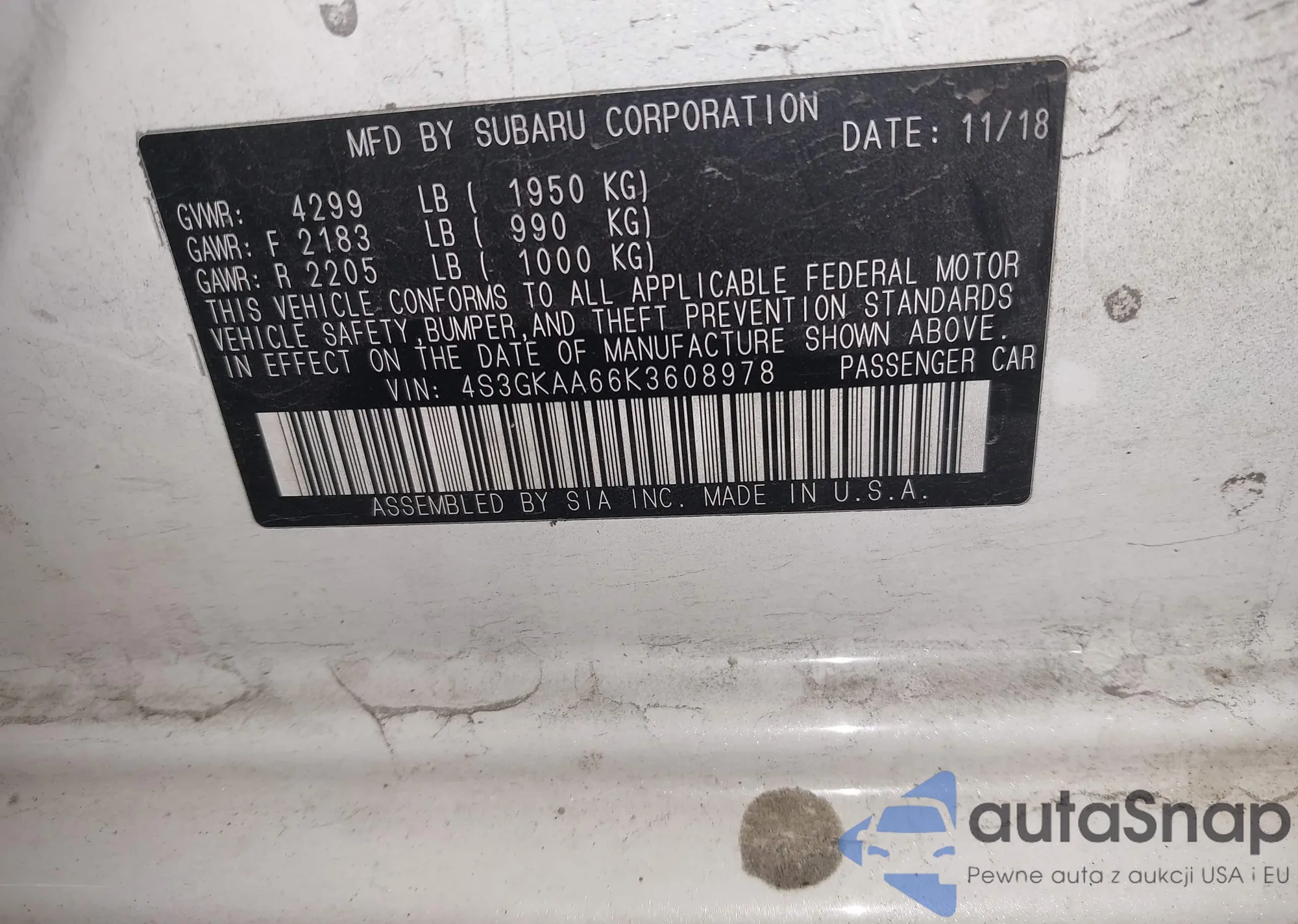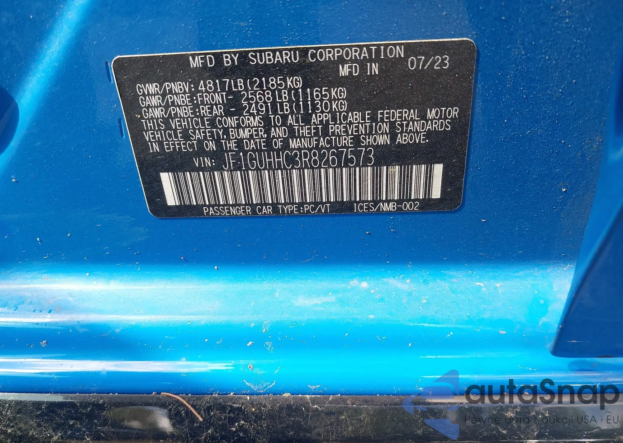 LOT: 43143408 VIN: JF1GUHHC3R8267573