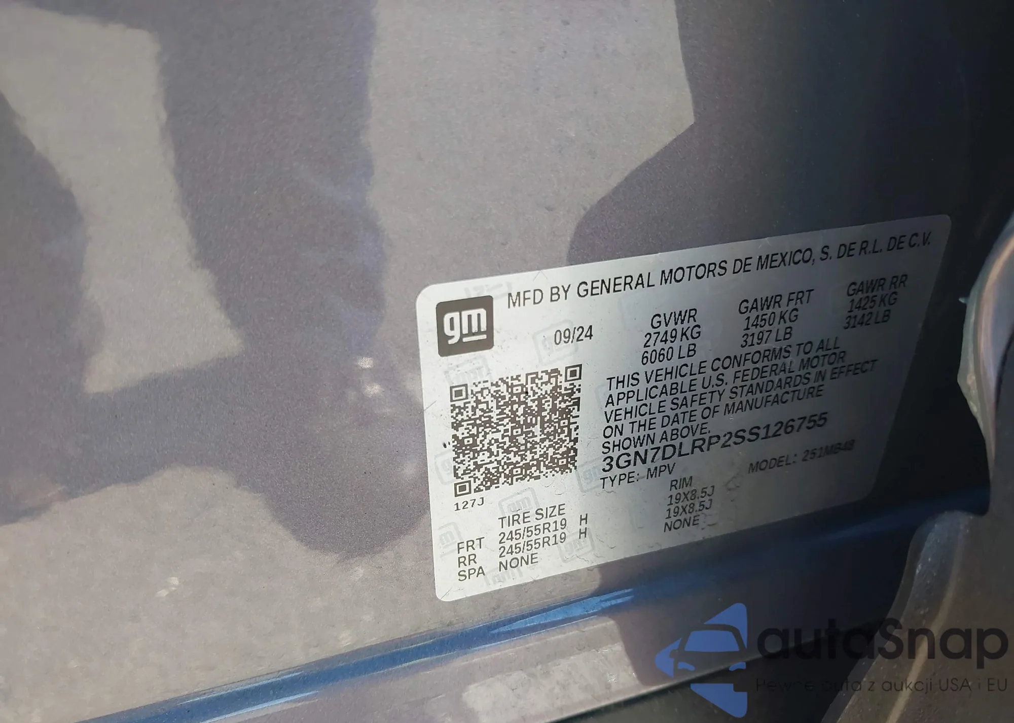 LOT: 43146662 VIN: 3GN7DLRP2SS126755