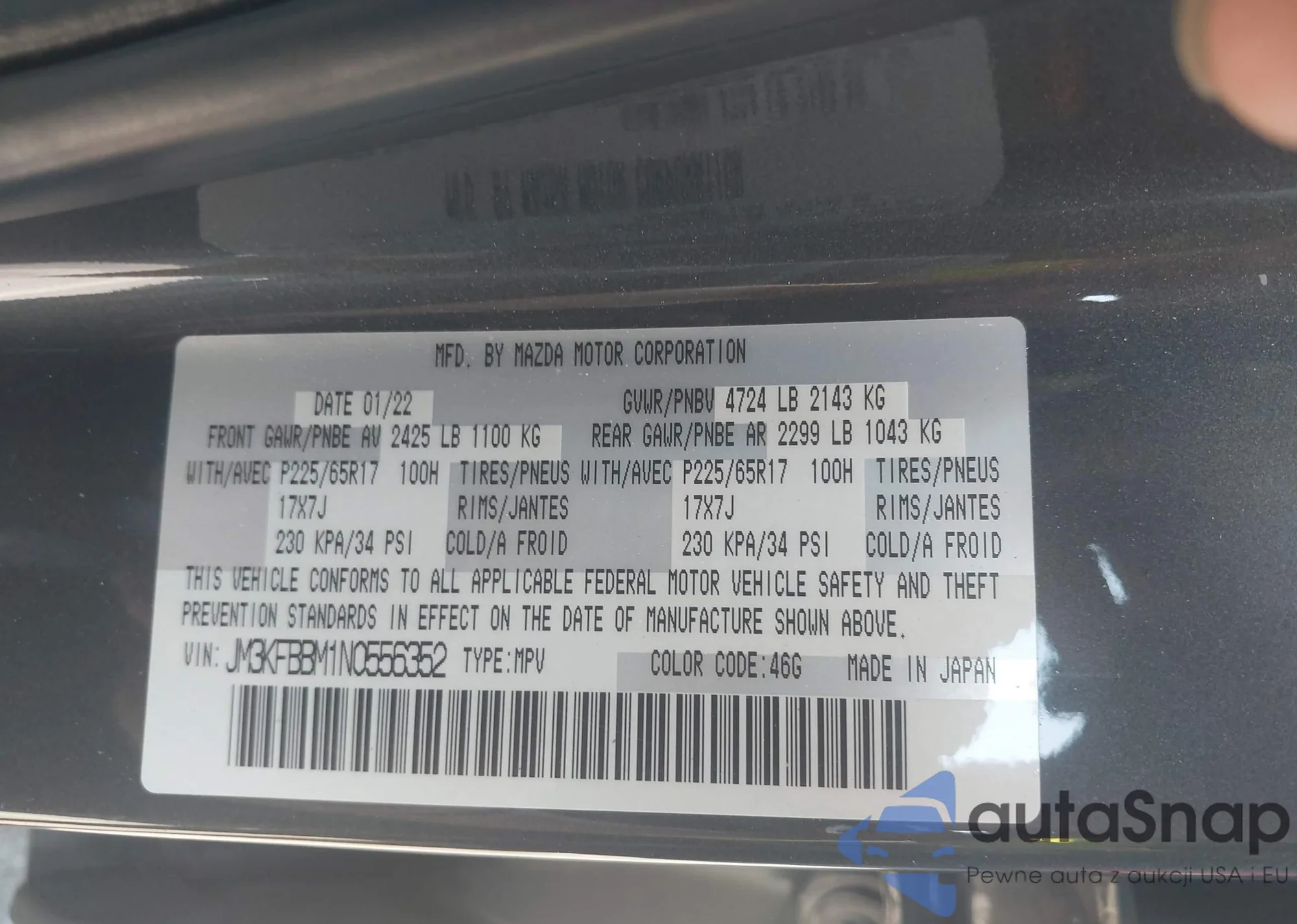 LOT: 43165375 VIN: JM3KFBBM1N0556352