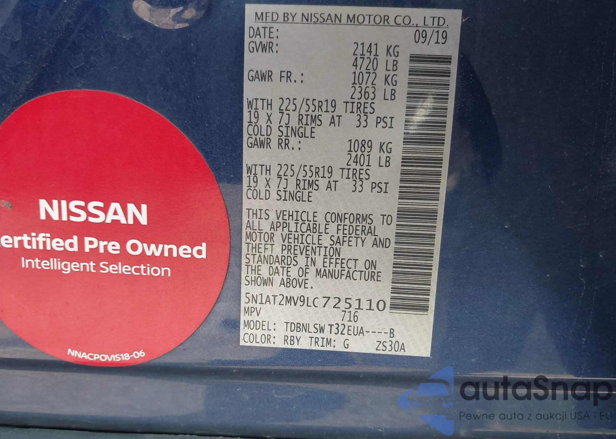 LOT: 43159484 VIN: 5N1AT2MV9LC725110