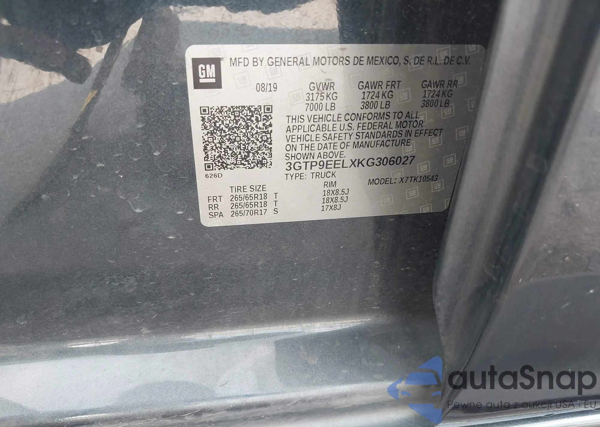 • VIN 3GTP9EELXKG306027