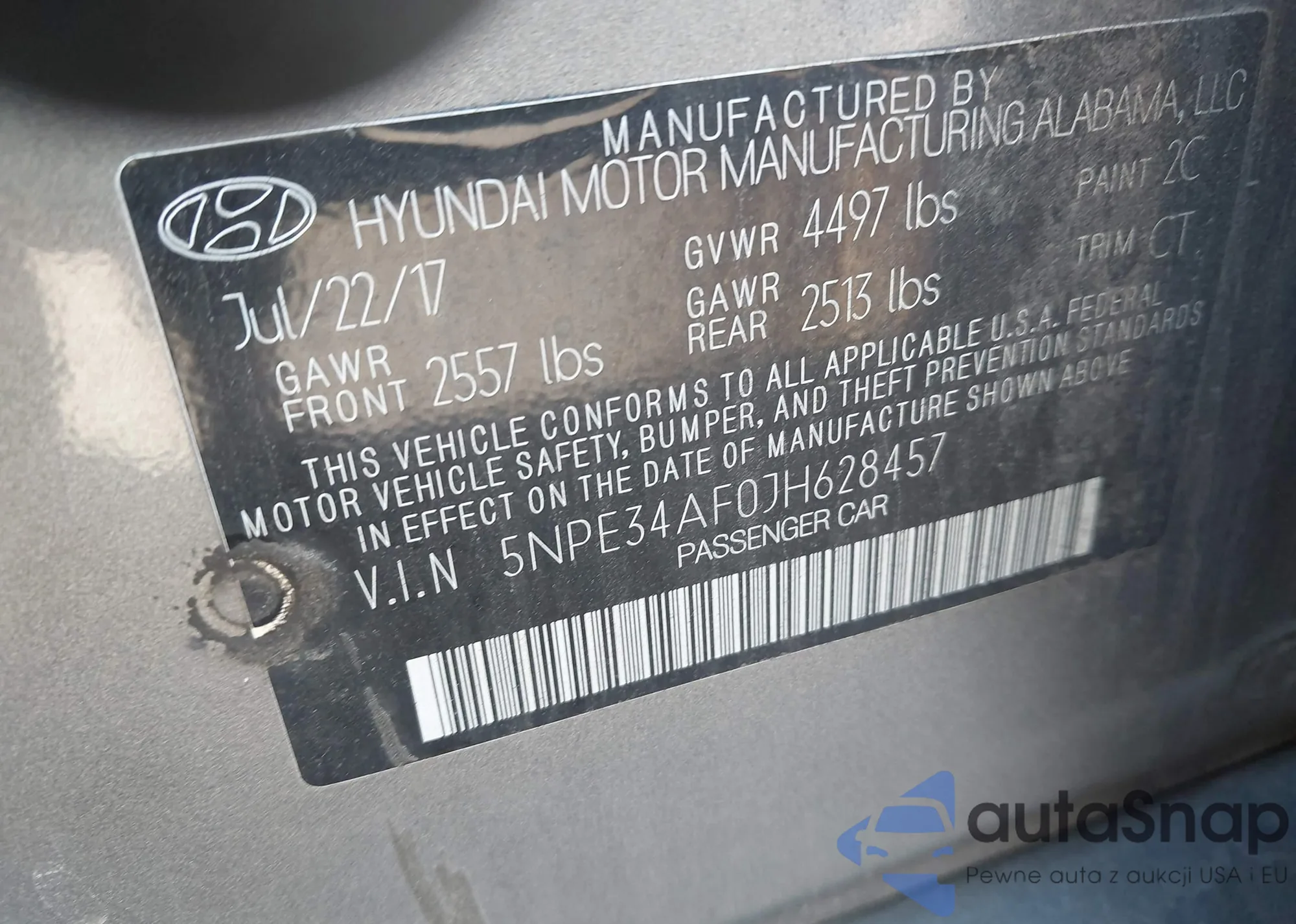 • VIN 5NPE34AF0JH628457