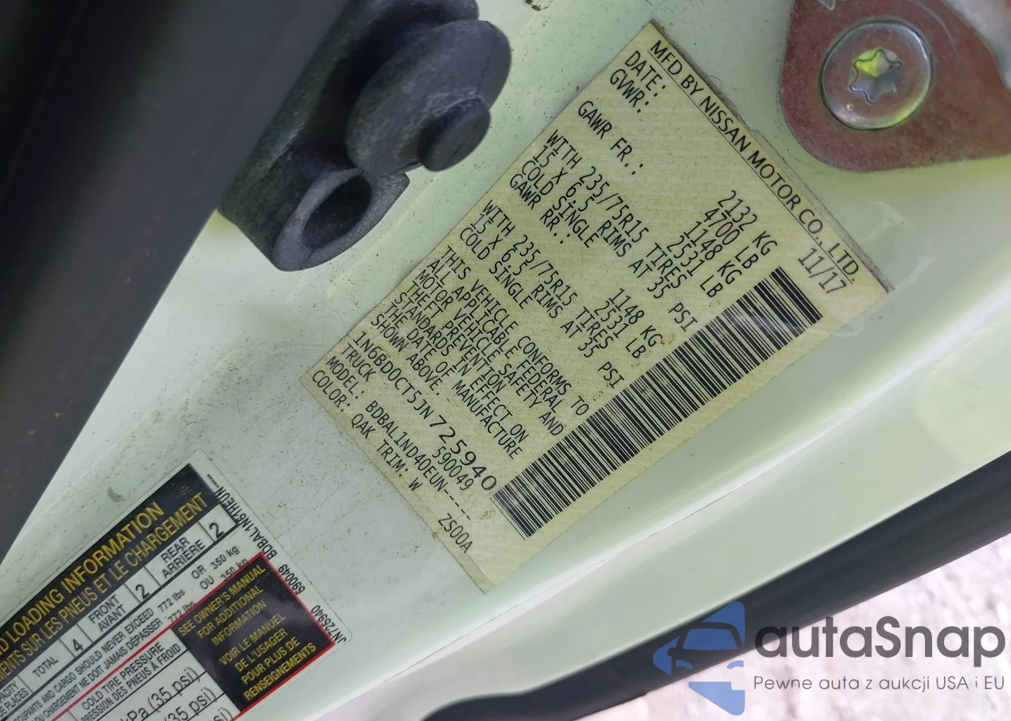 • VIN 1N6BD0CT5JN725940