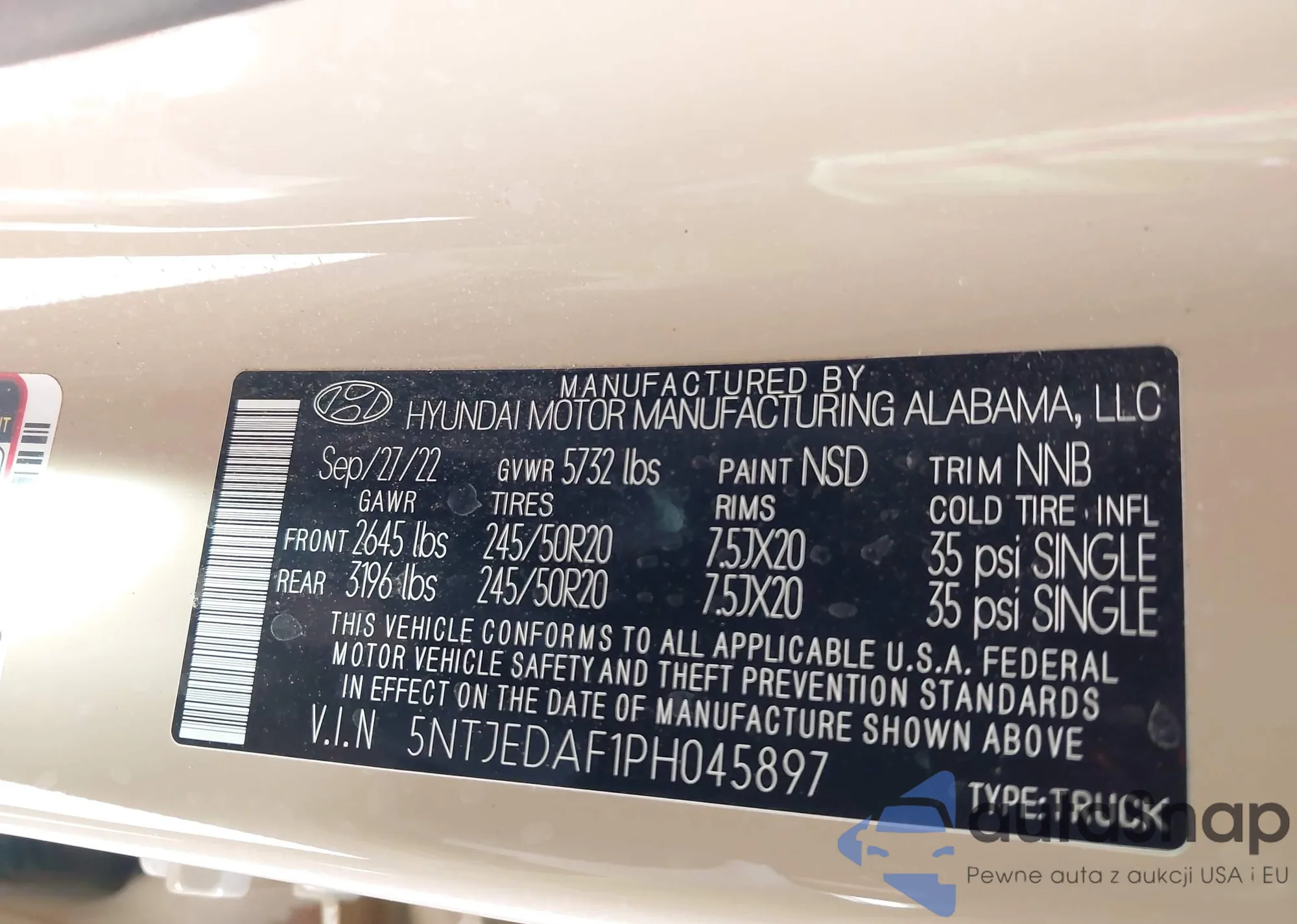 LOT: 43249004 VIN: 5NTJEDAF1PH045897