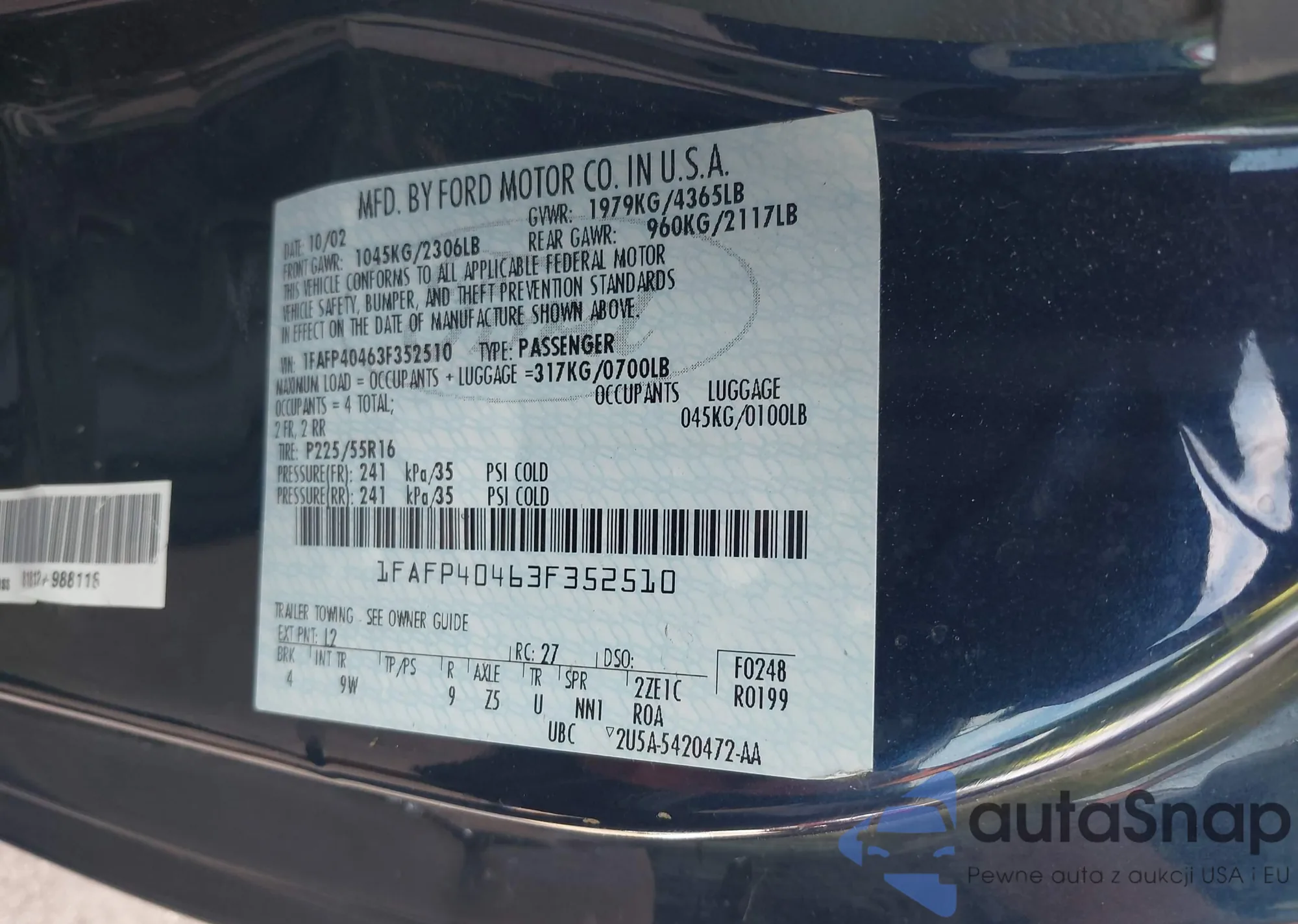 LOT: 43248902 VIN: 5TEGN92N94Z344297