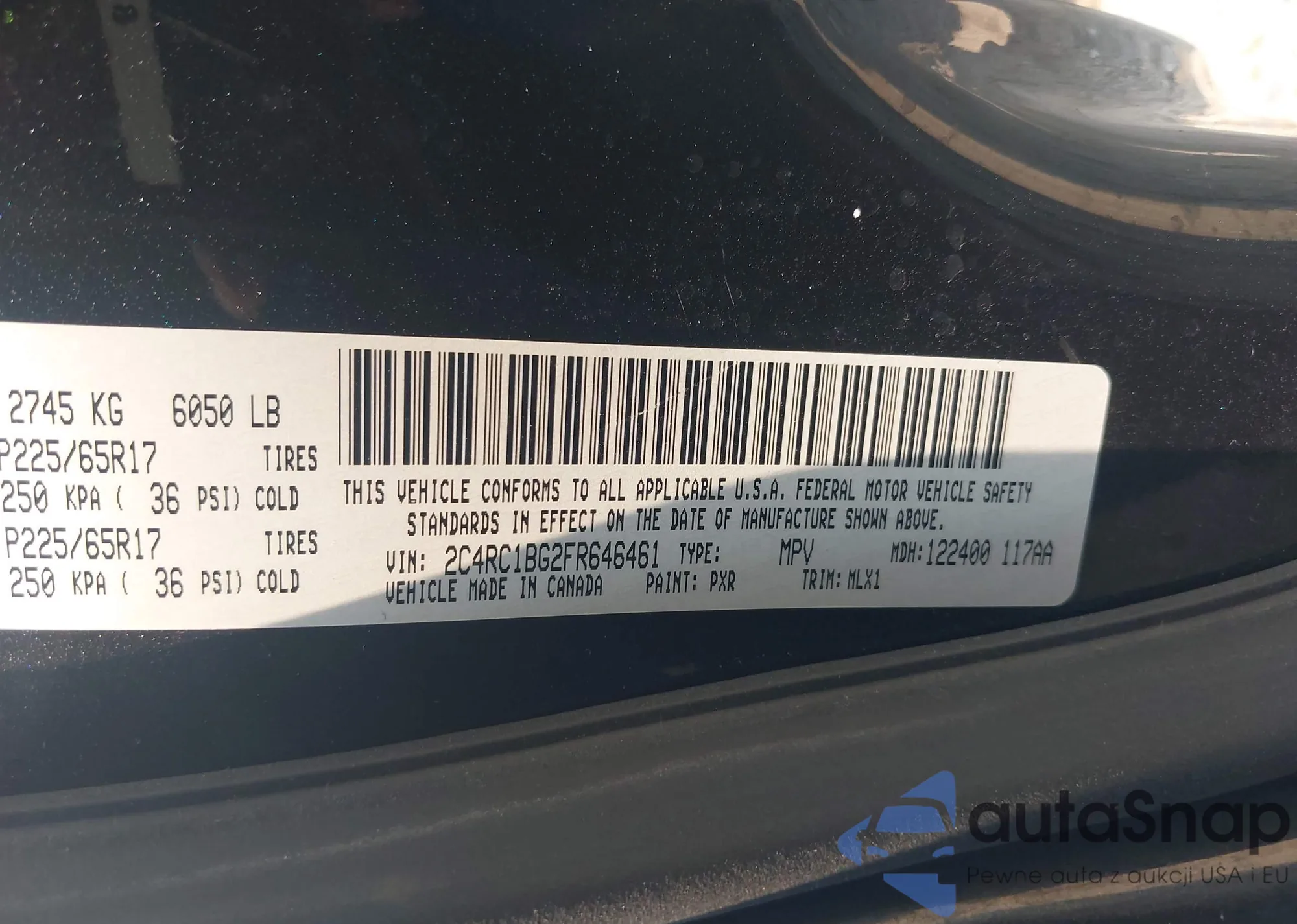 • VIN 2C4RC1BG2FR646461