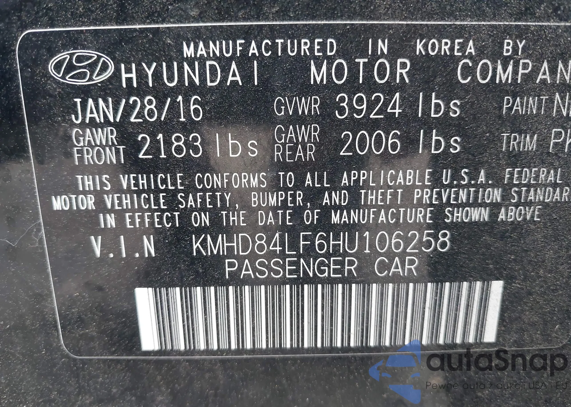 • VIN KMHD84LF6HU106258