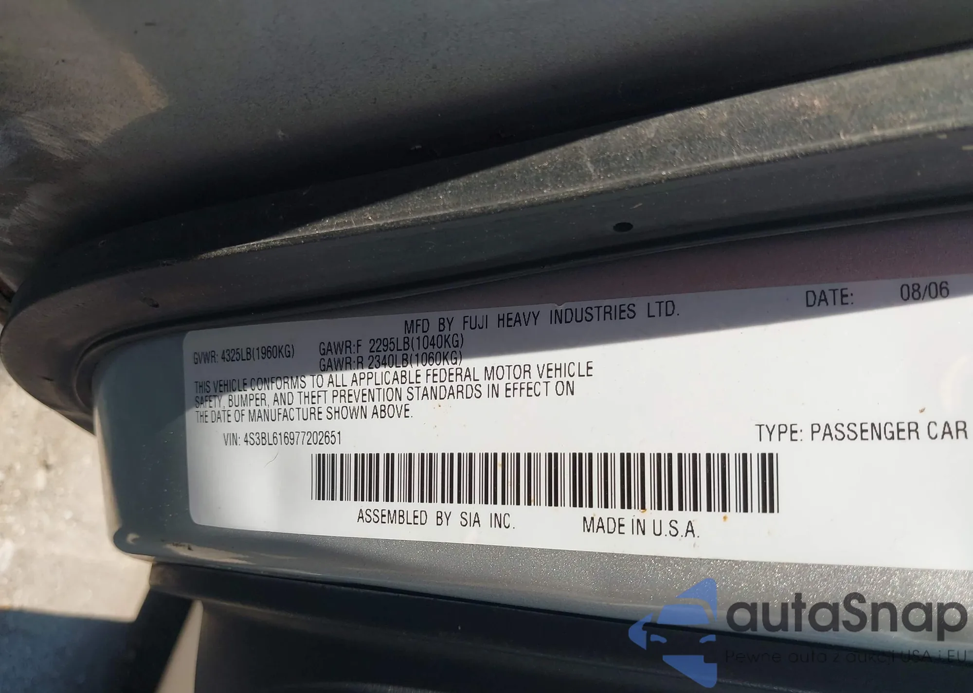• VIN 4S3BL616977202651